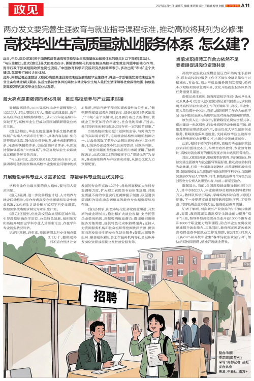 近日,中办、国办印发《关于加快构建普通高等学校毕业生高质量就业服务体系的意见》(以下简称《意见》)。