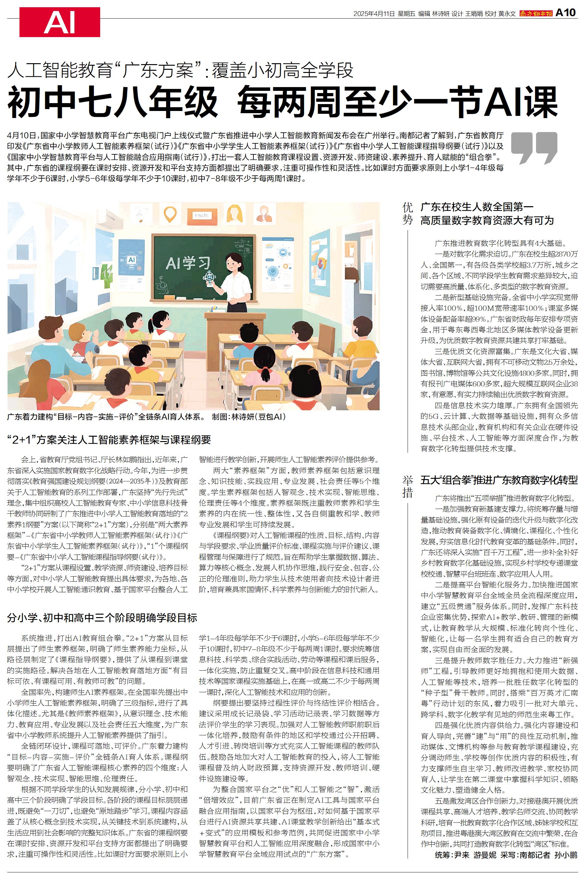 4月10日,国家中小学智慧教育平台广东电视门户上线仪式暨广东省推进中小学人工智能教育新闻发布会在广州举行。