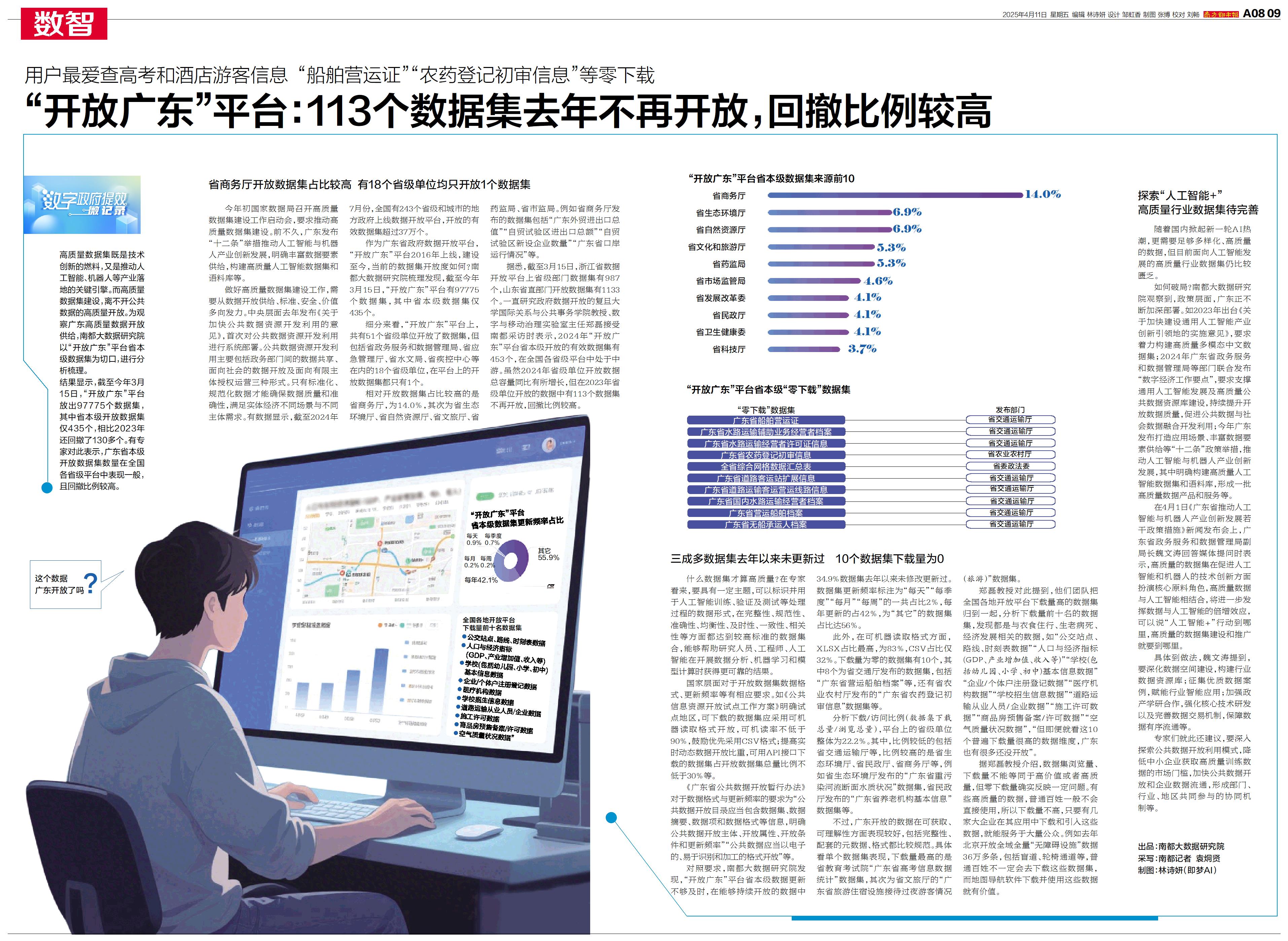 “开放广东”平台:113个数据集去年不再开放,回撤比例较高