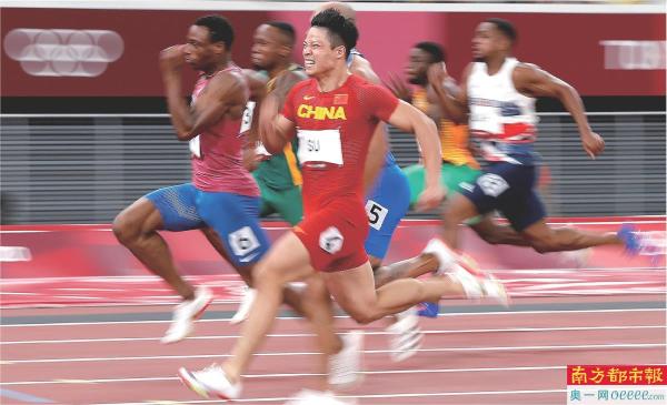 2021年8月1日,在东京奥运会田径男子100米半决赛中,中国选手苏炳添跑出了9秒83的成绩。 新华社发