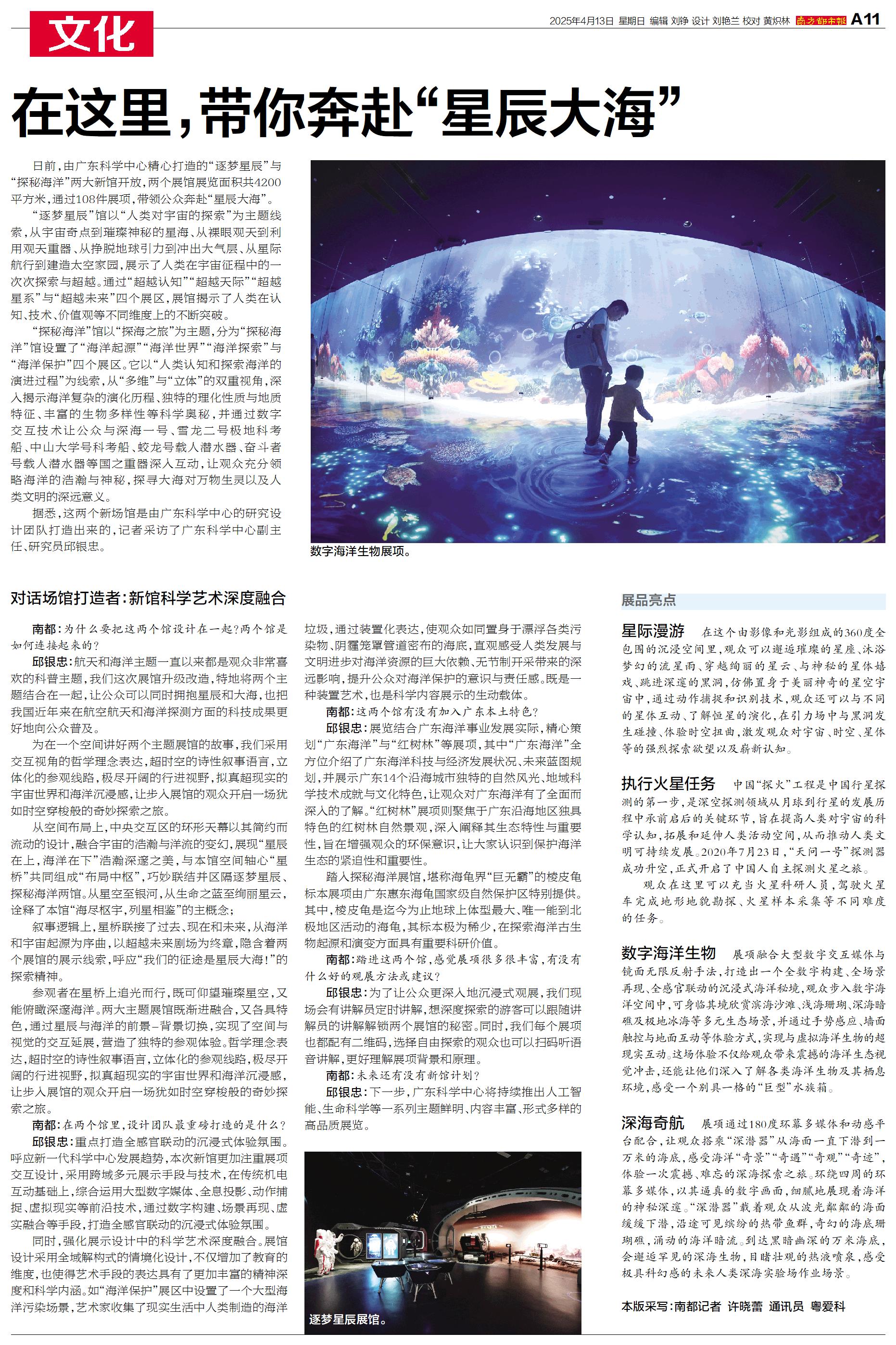 日前,由广东科学中心精心打造的“逐梦星辰”与“探秘海洋”两大新馆开放,两个展馆展览面积共4200平方米,通过108件展项,带领公众奔赴“星辰大海”。