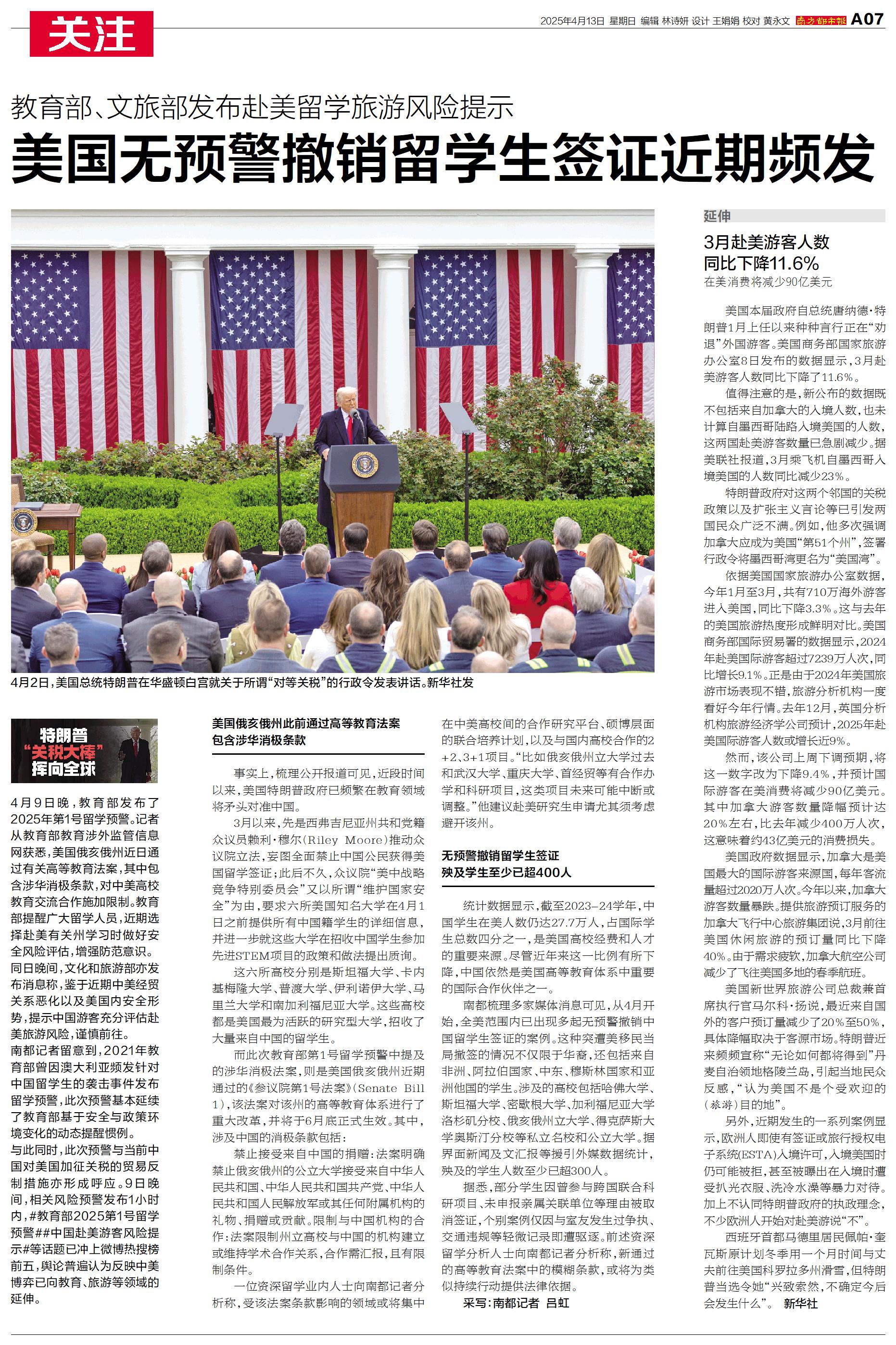 4月9日晚,教育部发布了2025年第1号留学预警。