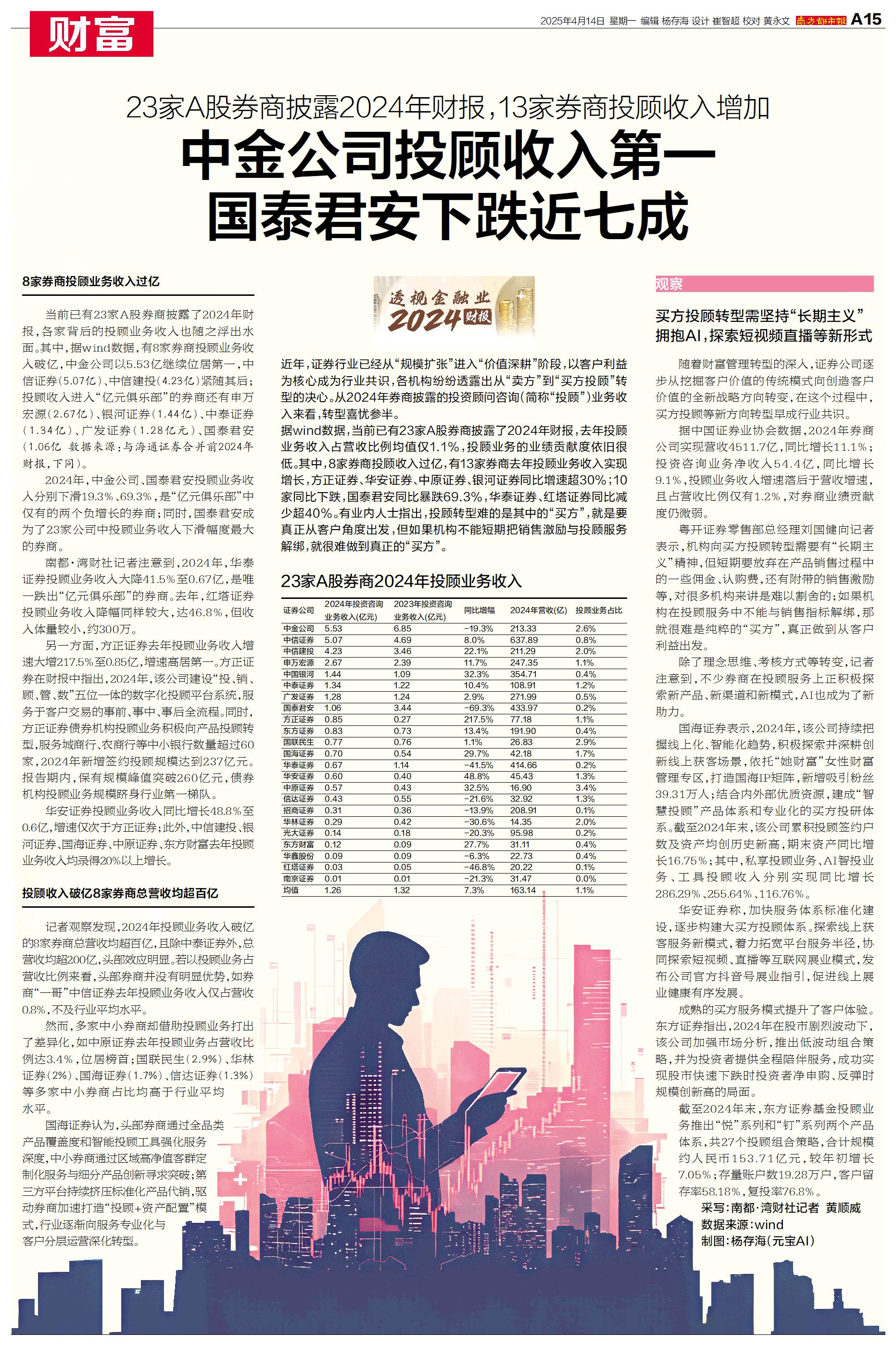 近年,证券行业已经从“规模扩张”进入“价值深耕”阶段,以客户利益为核心成为行业共识,各机构纷纷透露出从“卖方”到“买方投顾”转型的决心。