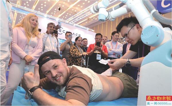会做手术的机器人,你见过吗?在现场,来自广东深圳元化智能展示的骨科手术机器人,吸引了大量医疗领域的采购商垂询。董事长孟李艾俐介绍道,这款全骨科手术机器人叫“锟铻”,可进行多适应症的全关节骨科手术。
