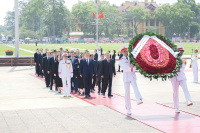 4月15日上午,中共中央总书记、国家主席习近平在河内国际会议中心同越共中央总书记苏林、越南国家主席梁强共同会见中越人民大联欢活动代表。