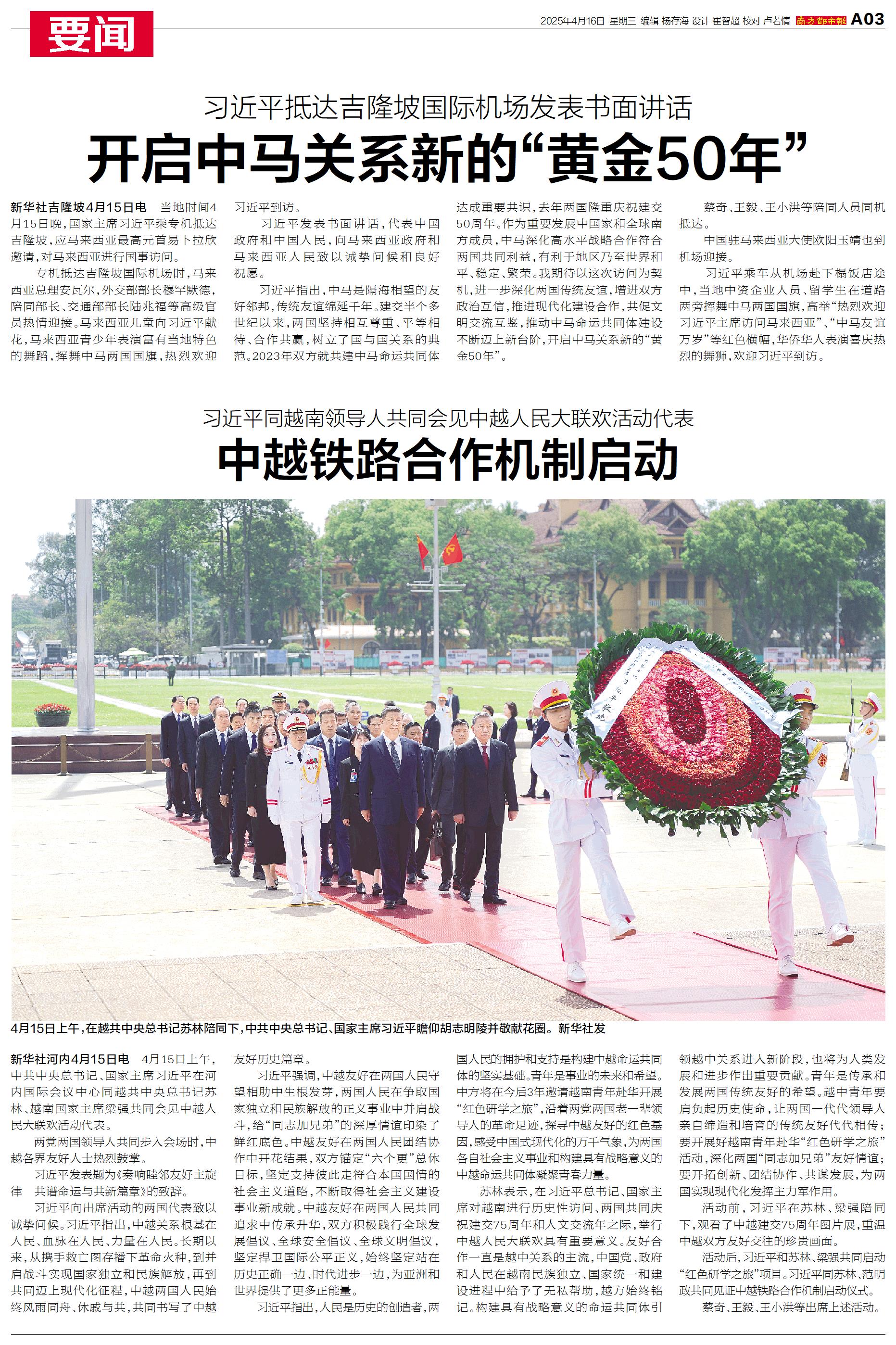 当地时间4月15日晚,国家主席习近平乘专机抵达吉隆坡,应马来西亚最高元首易卜拉欣邀请,对马来西亚进行国事访问。