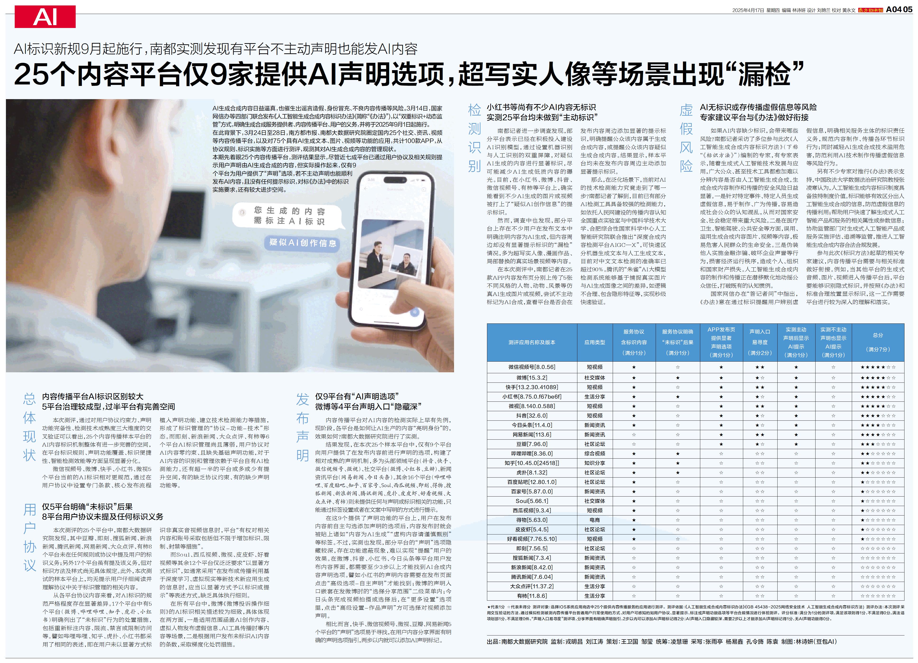 25个内容平台仅9家提供AI声明选项,超写实人像等场景出现“漏检”