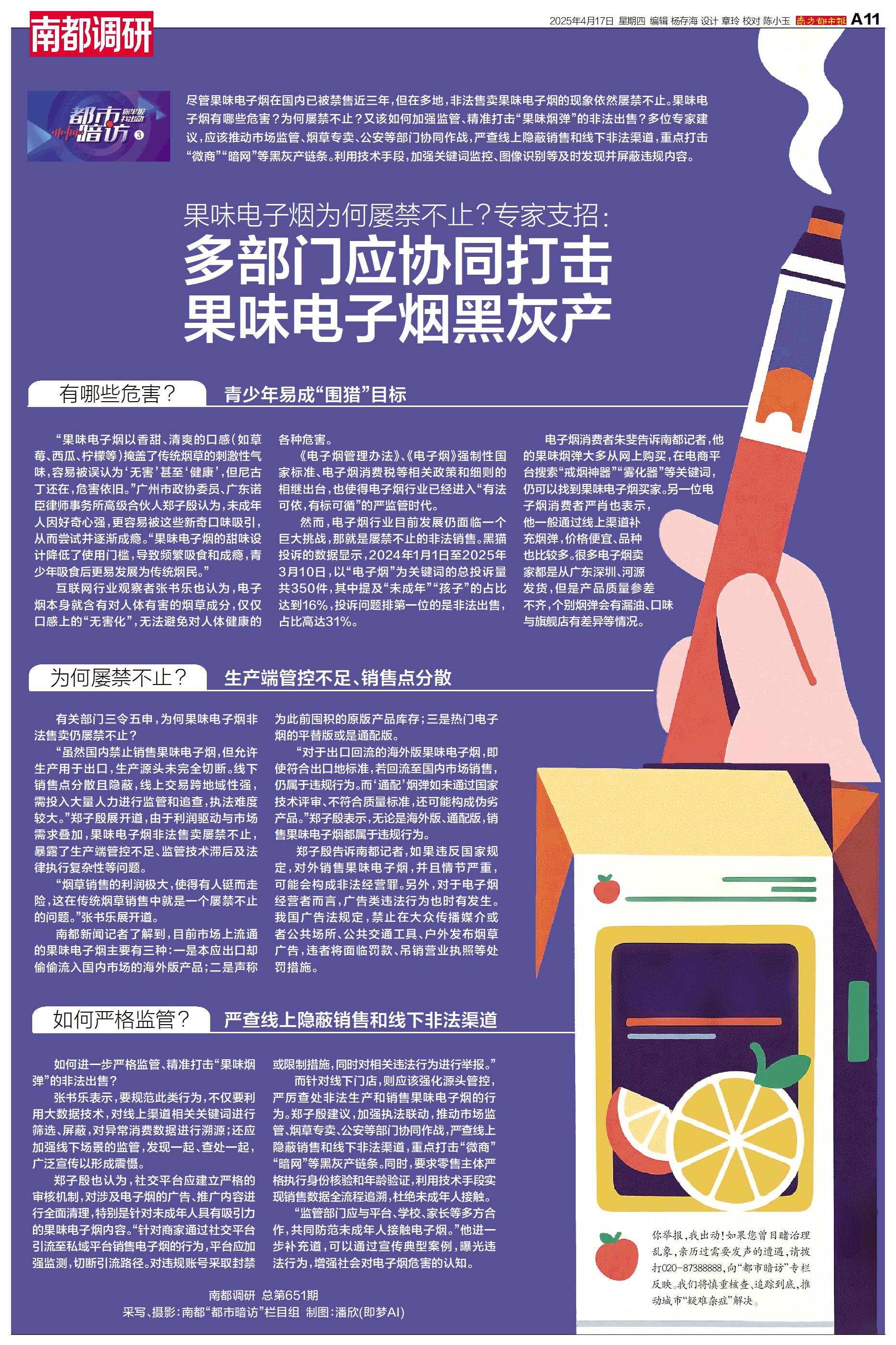 尽管果味电子烟在国内已被禁售近三年,但在多地,非法售卖果味电子烟的现象依然屡禁不止。