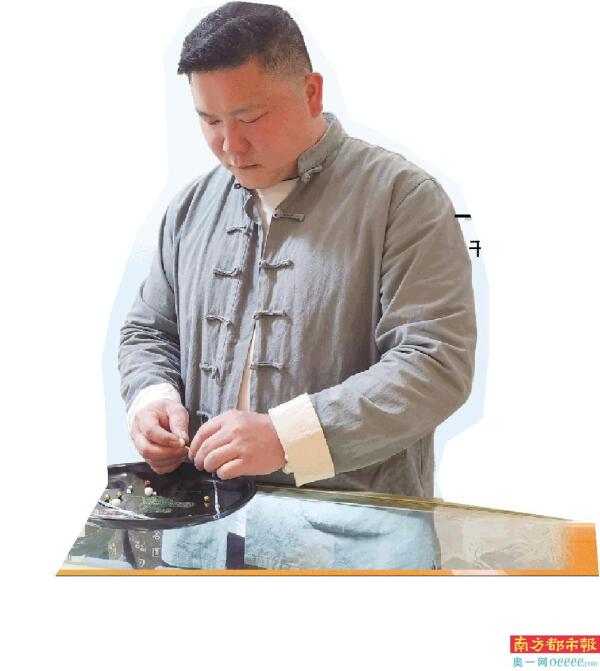 每天上午,程氏端砚第十四代传承人、“砚玉玲珑”品牌创始人、80后程振业一如既往出现在工作室,挑选打磨白端砚石材料,最近,他又在忙着构思新产品。“白端石产自肇庆七星岩,石质细腻、光滑温润、洁白无瑕。在今年的广府文化庙会上,我们的白端石耳环、八卦砚吊坠、AR交互砚台这些,都很受欢迎。”程振业把原本可能被废弃的边角料变成了精美的手串和手绳等饰品,使得白端这一珍贵石材的价值得到了最大程度的发挥。
