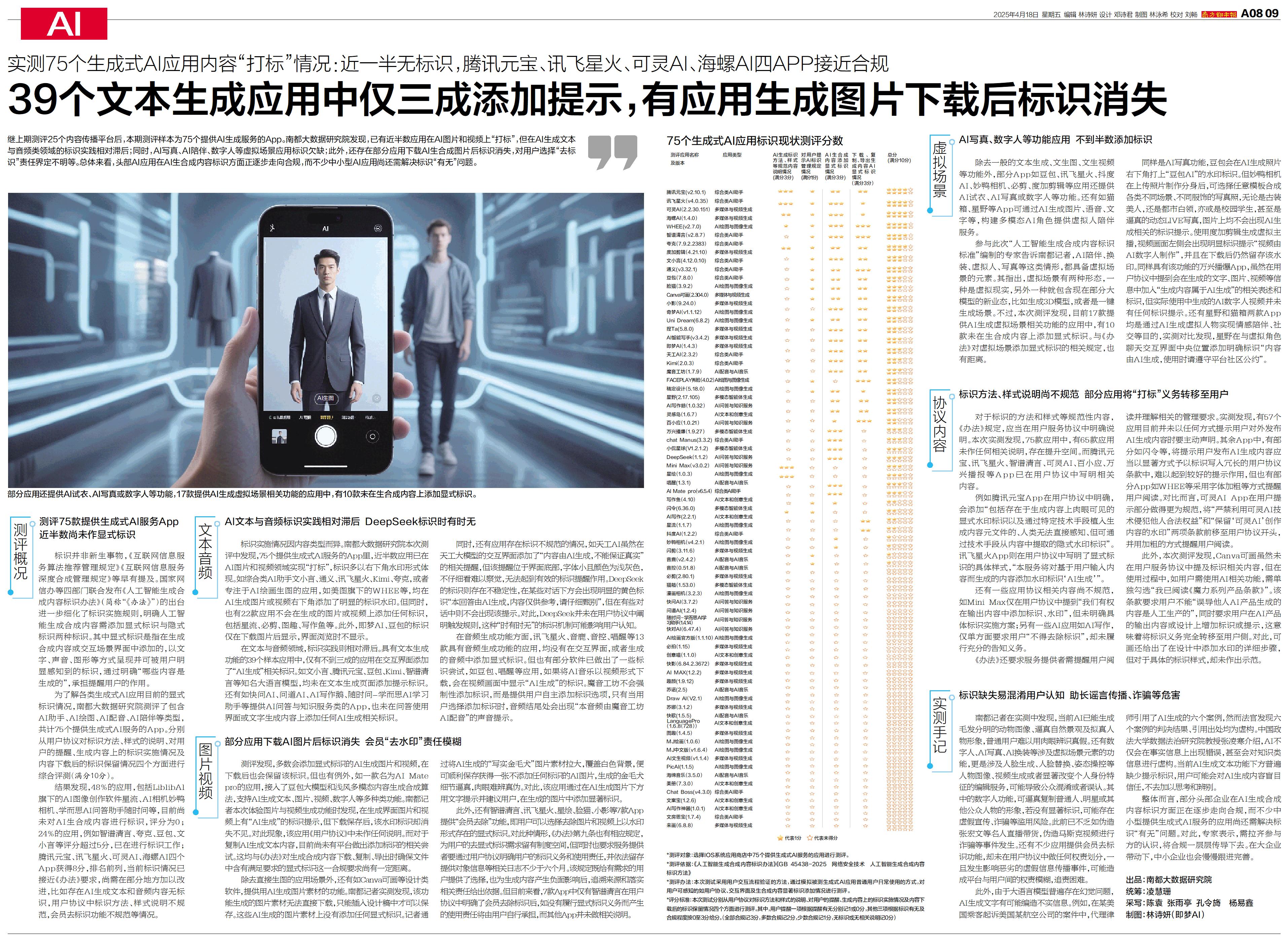 39个文本生成应用中仅三成添加提示,有应用生成图片下载后标识消失