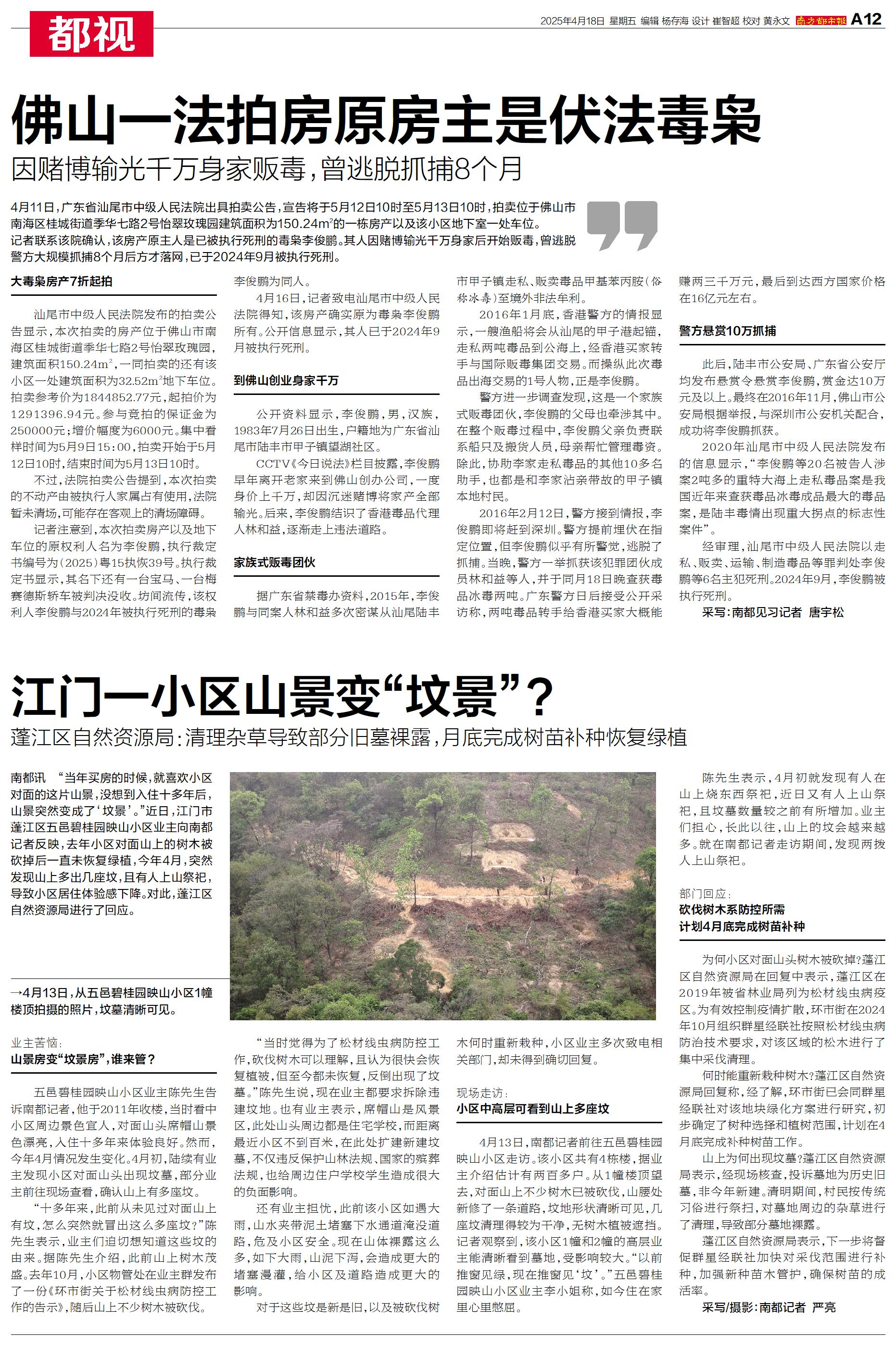 近日,江门市蓬江区五邑碧桂园映山小区业主向南都记者反映,去年小区对面山上的树木被砍掉后一直未恢复绿植,今年4月,突然发现山上多出几座坟,且有人上山祭祀,导致小区居住体验感下降。