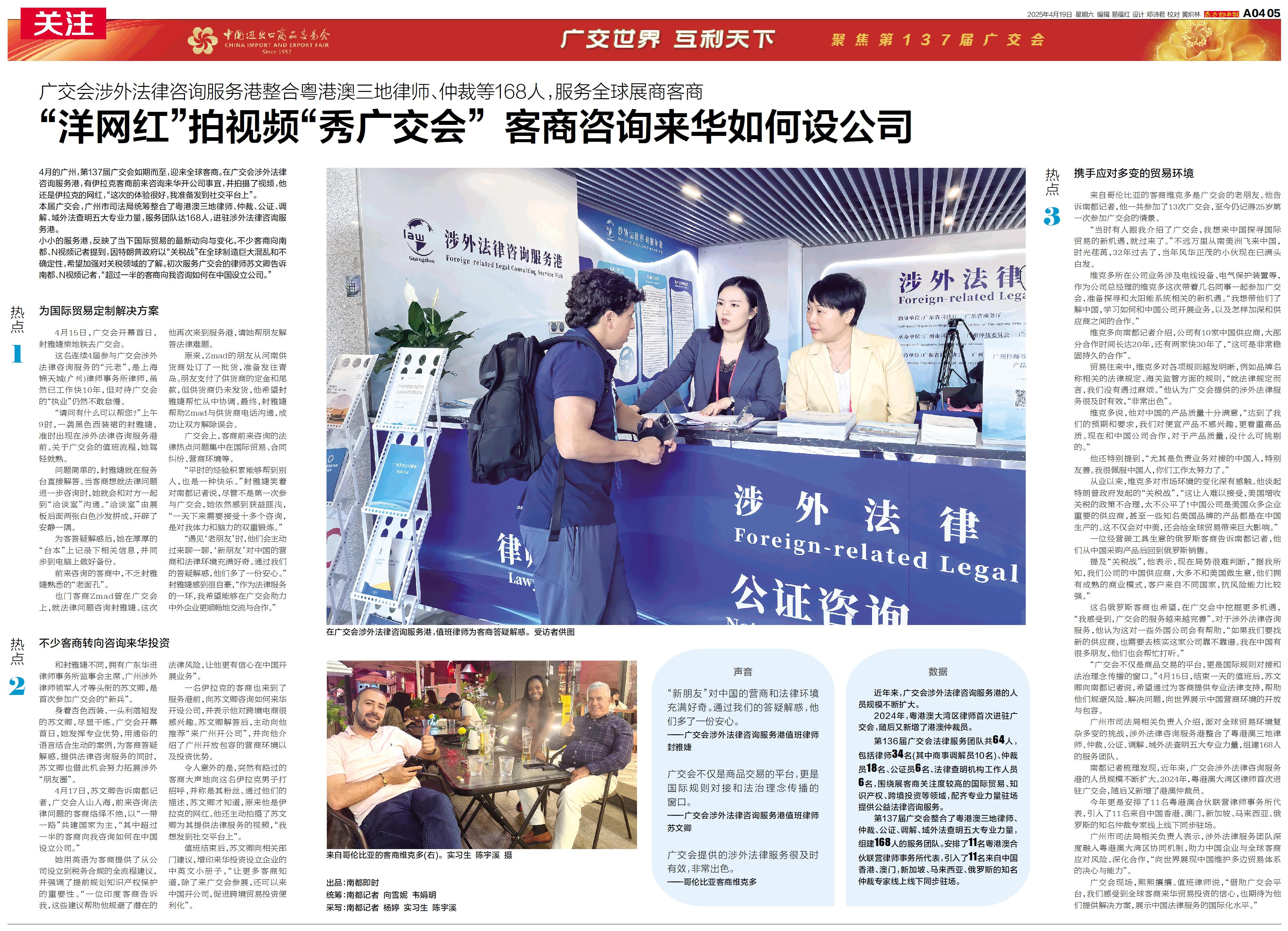 “洋网红”拍视频“秀广交会”客商咨询来华如何设公司
