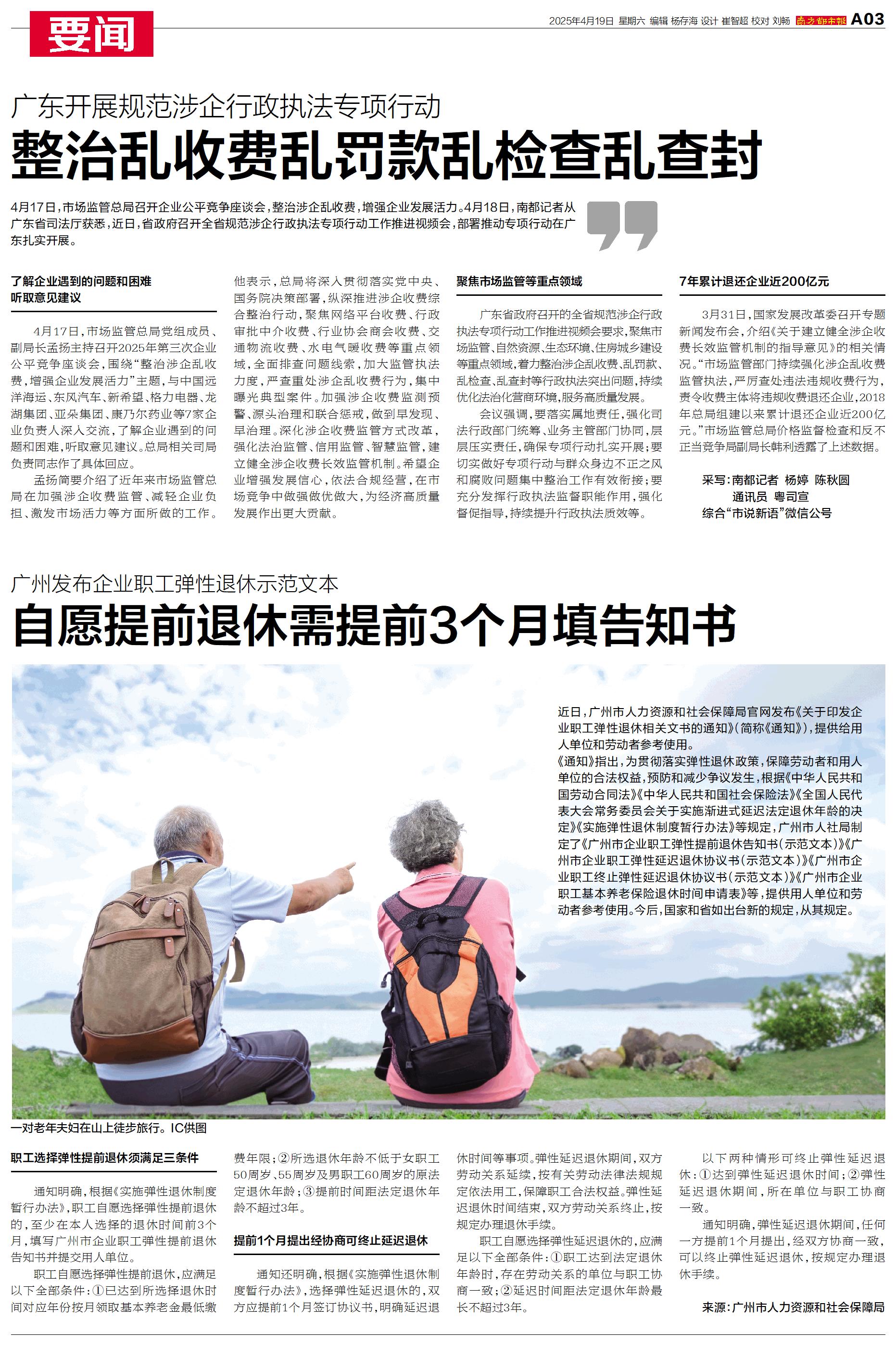 近日,广州市人力资源和社会保障局官网发布《关于印发企业职工弹性退休相关文书的通知》,提供给用人单位和劳动者参考使用。