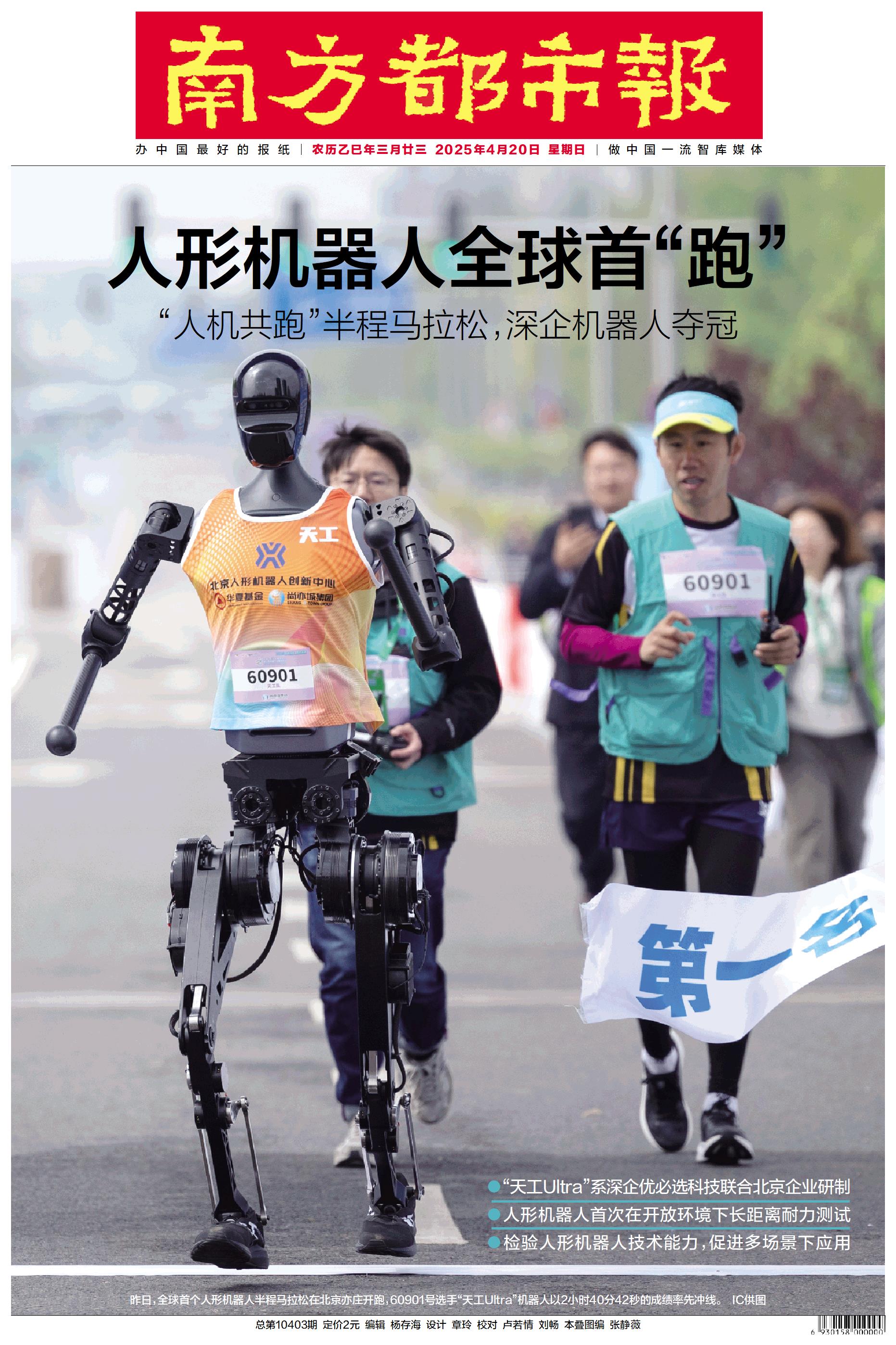 昨日,全球首个人形机器人半程马拉松在北京亦庄开跑,60901号选手“天工Ultra”机器人以2小时40分42秒的成绩率先冲线。