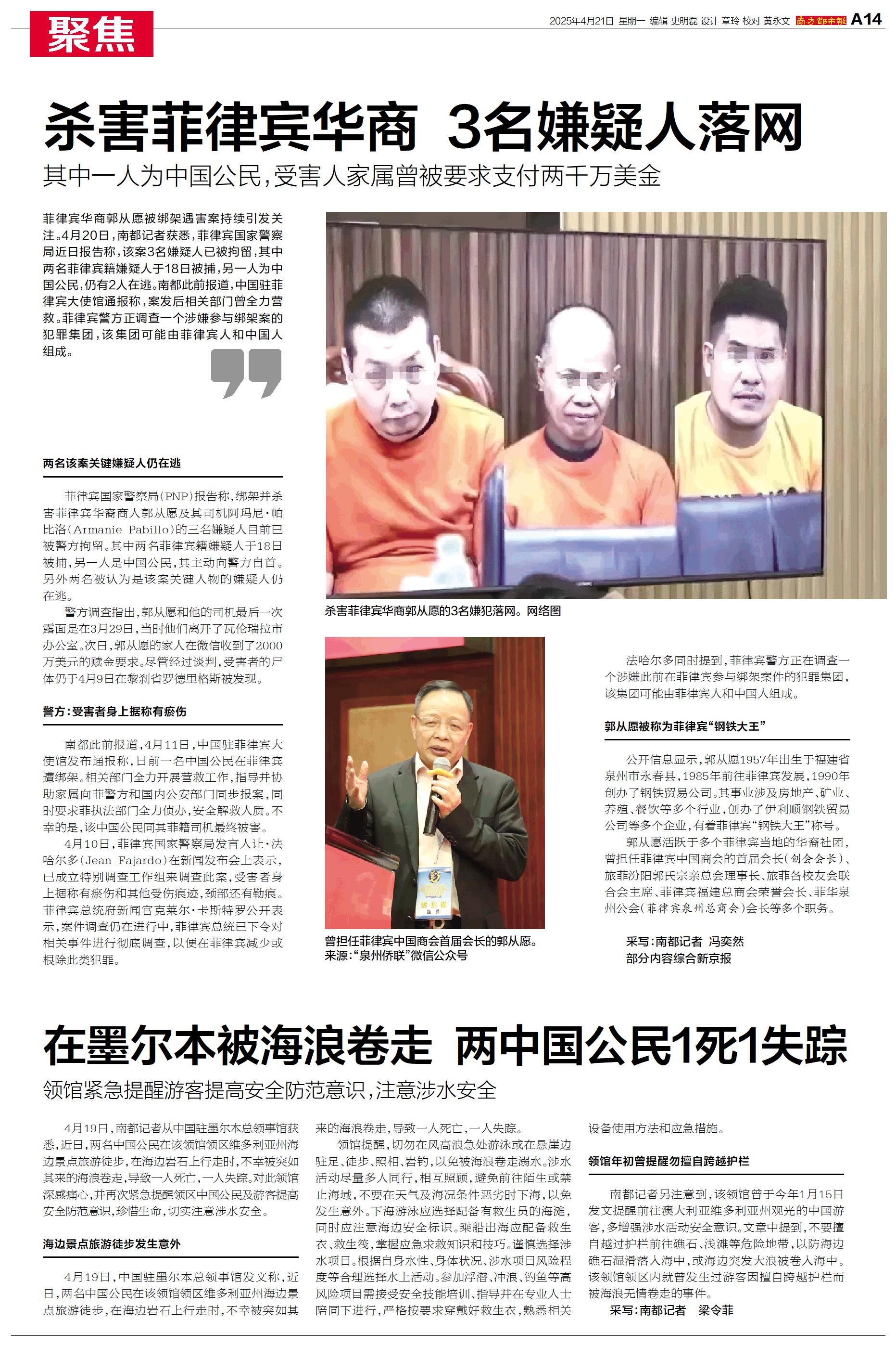 菲律宾华商郭从愿被绑架遇害案持续引发关注。