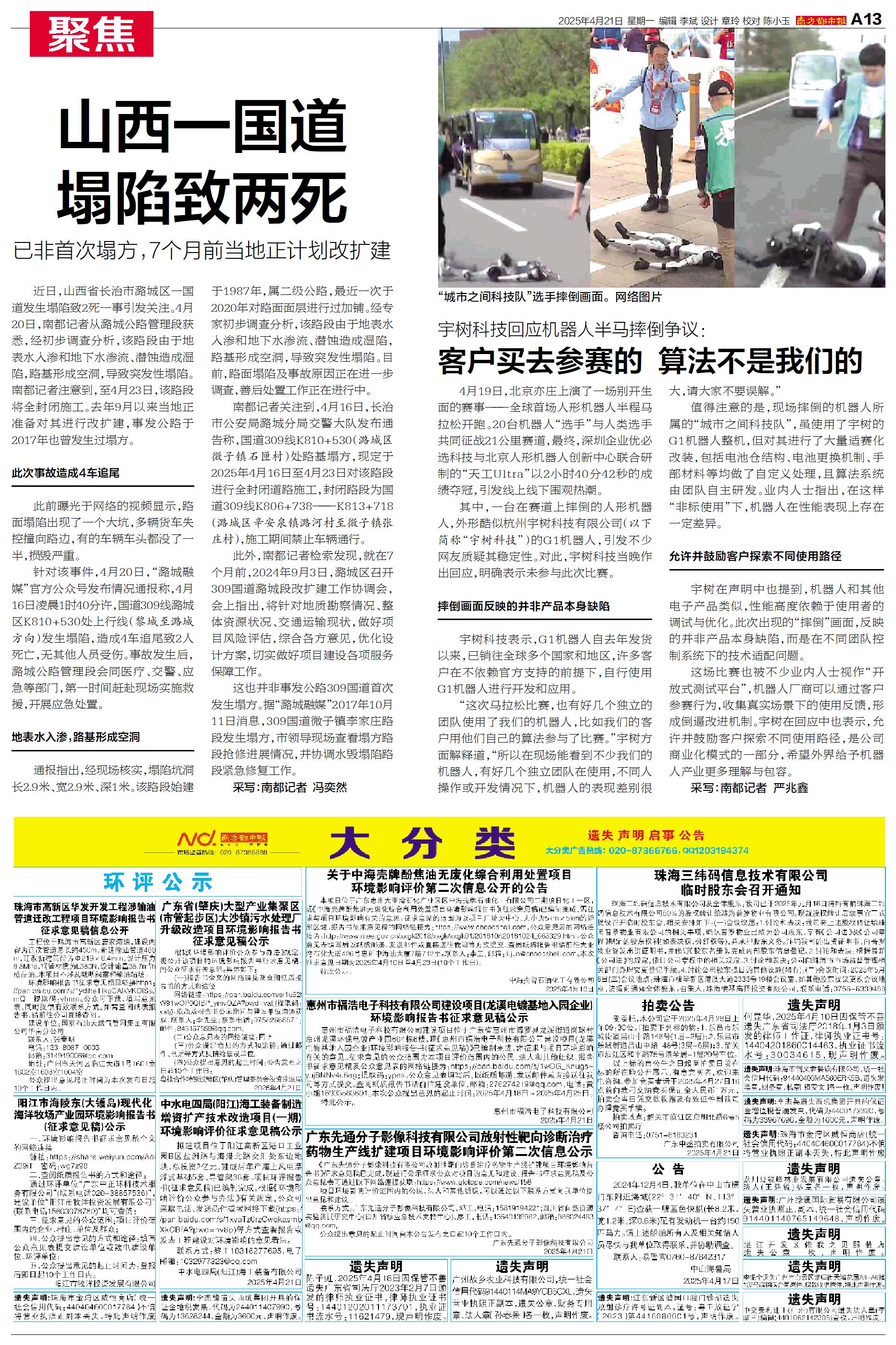 近日,山西省长治市潞城区一国道发生塌陷致2死一事引发关注。