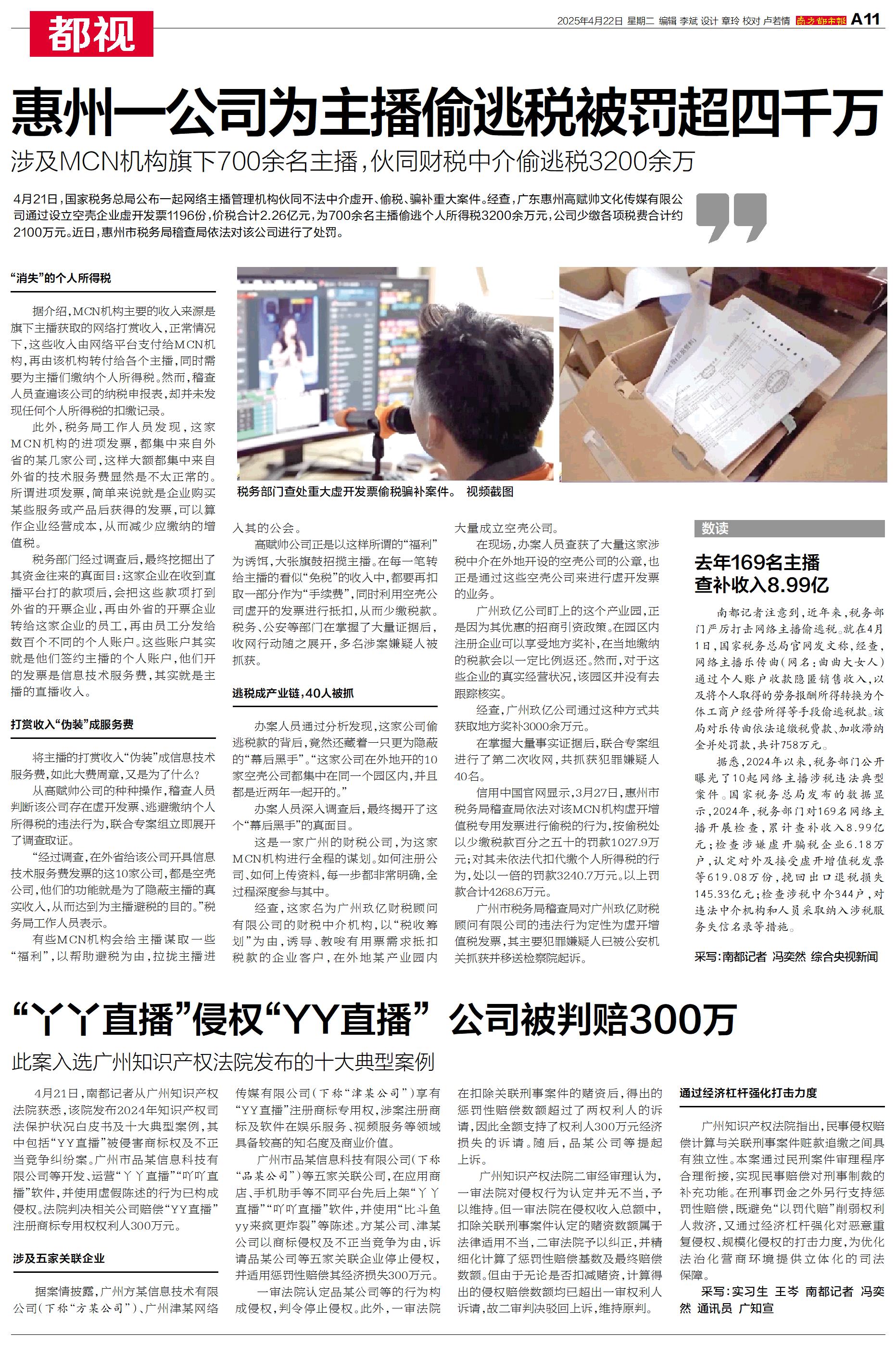4月21日,国家税务总局公布一起网络主播管理机构伙同不法中介虚开、偷税、骗补重大案件。
