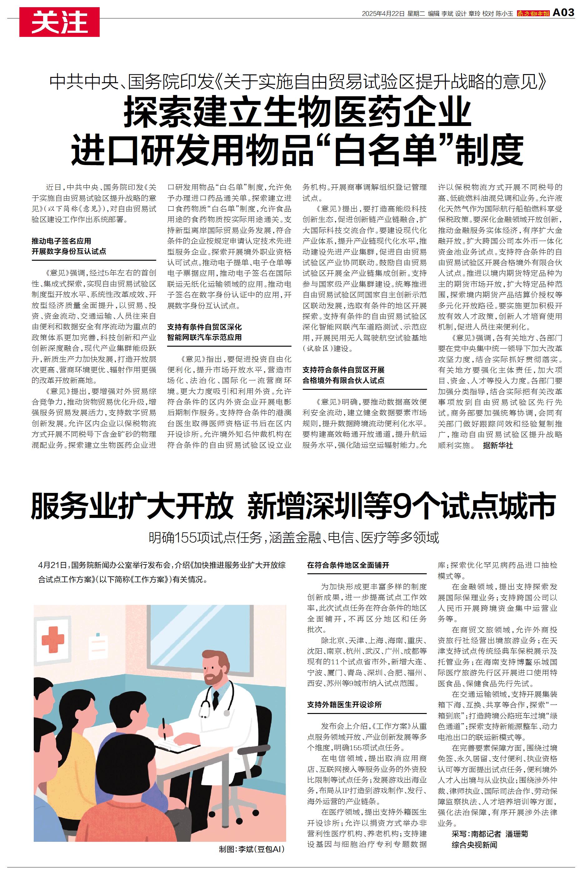 探索建立生物医药企业进口研发用物品“白名单”制度