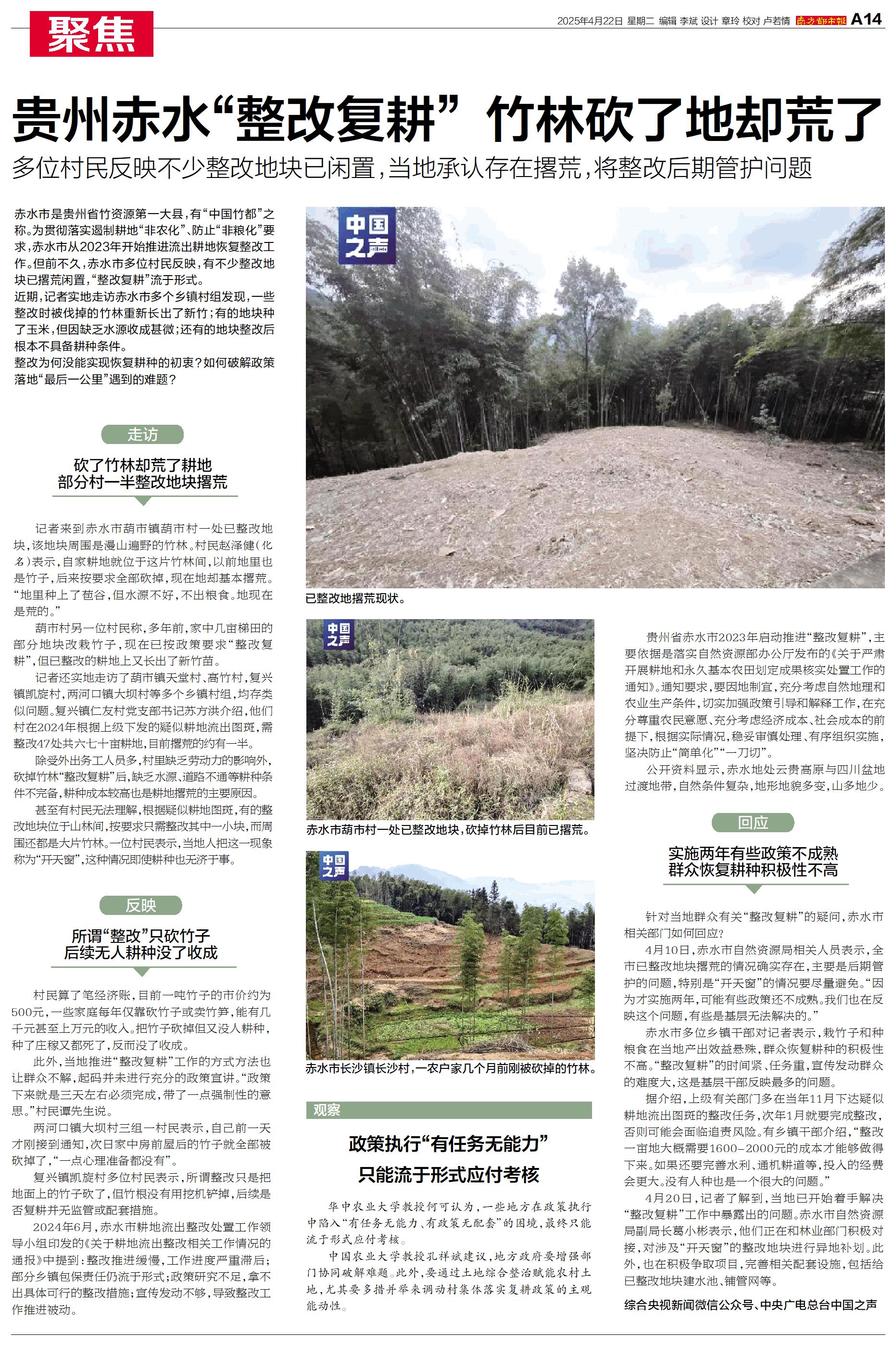 贵州赤水“整改复耕” 竹林砍了地却荒了