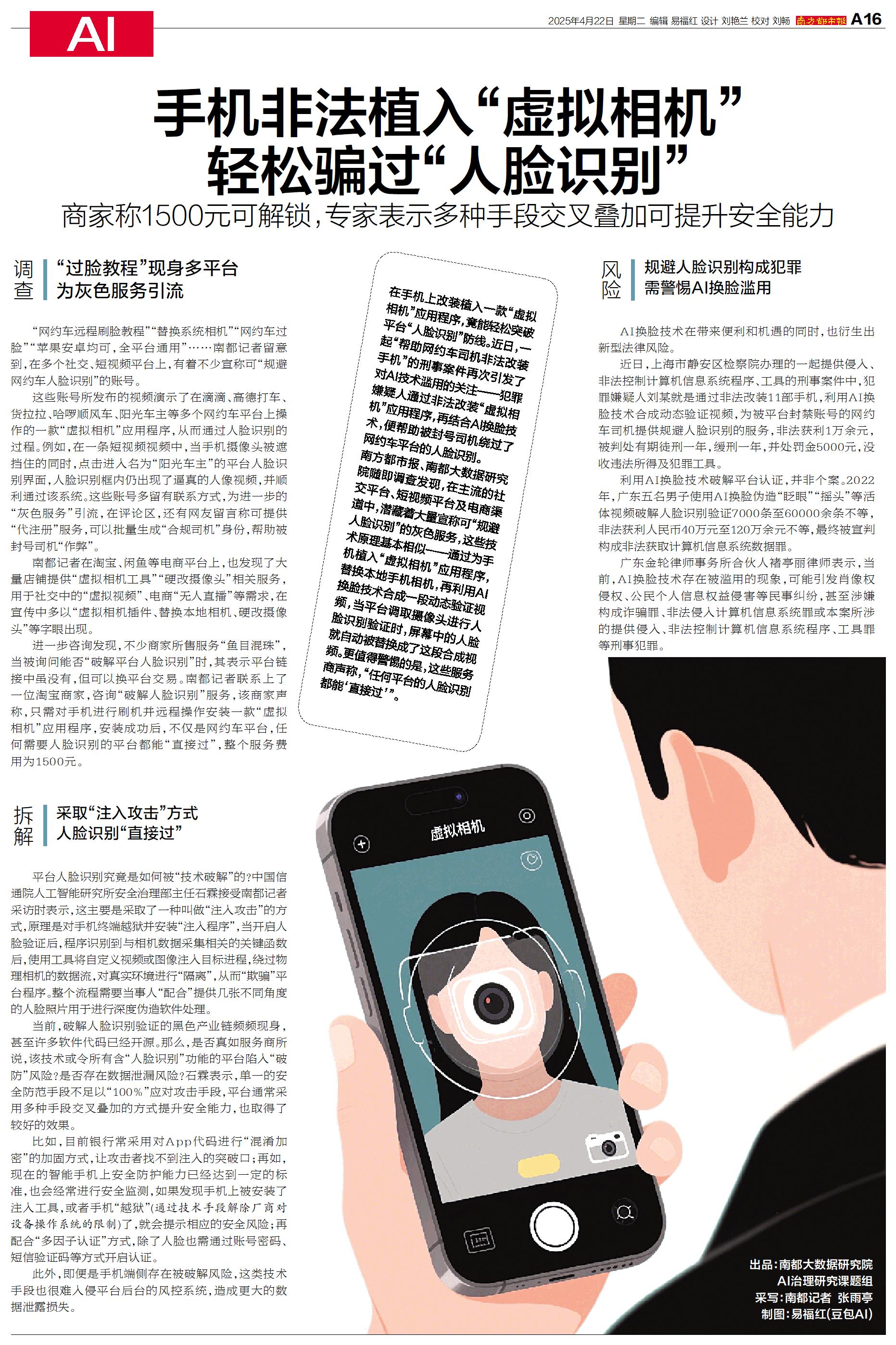 在手机上改装植入一款“虚拟相机”应用程序,竟能轻松突破平台“人脸识别”防线。