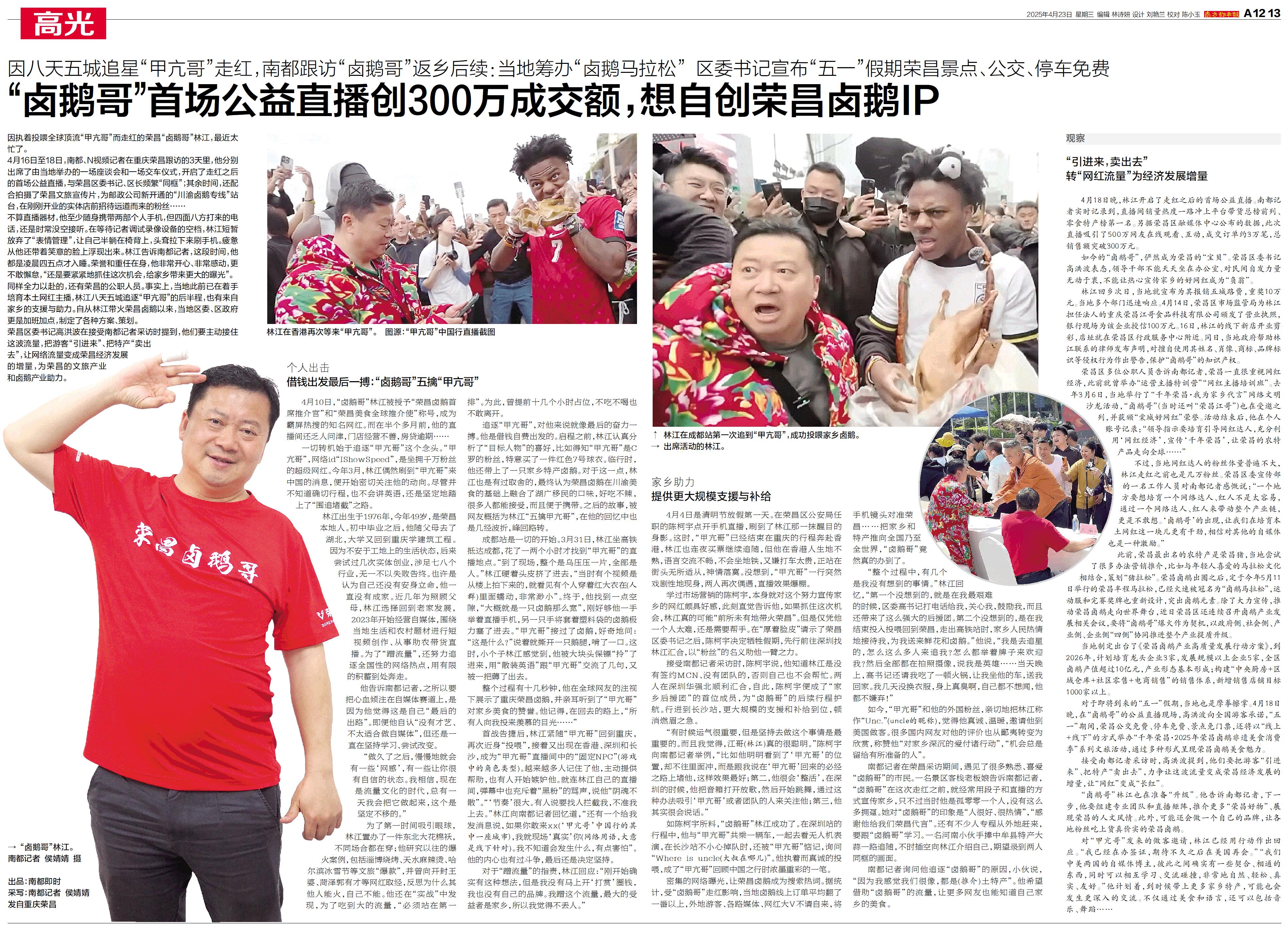 因执着投喂全球顶流“甲亢哥”而走红的荣昌“卤鹅哥”林江,最近太忙了。