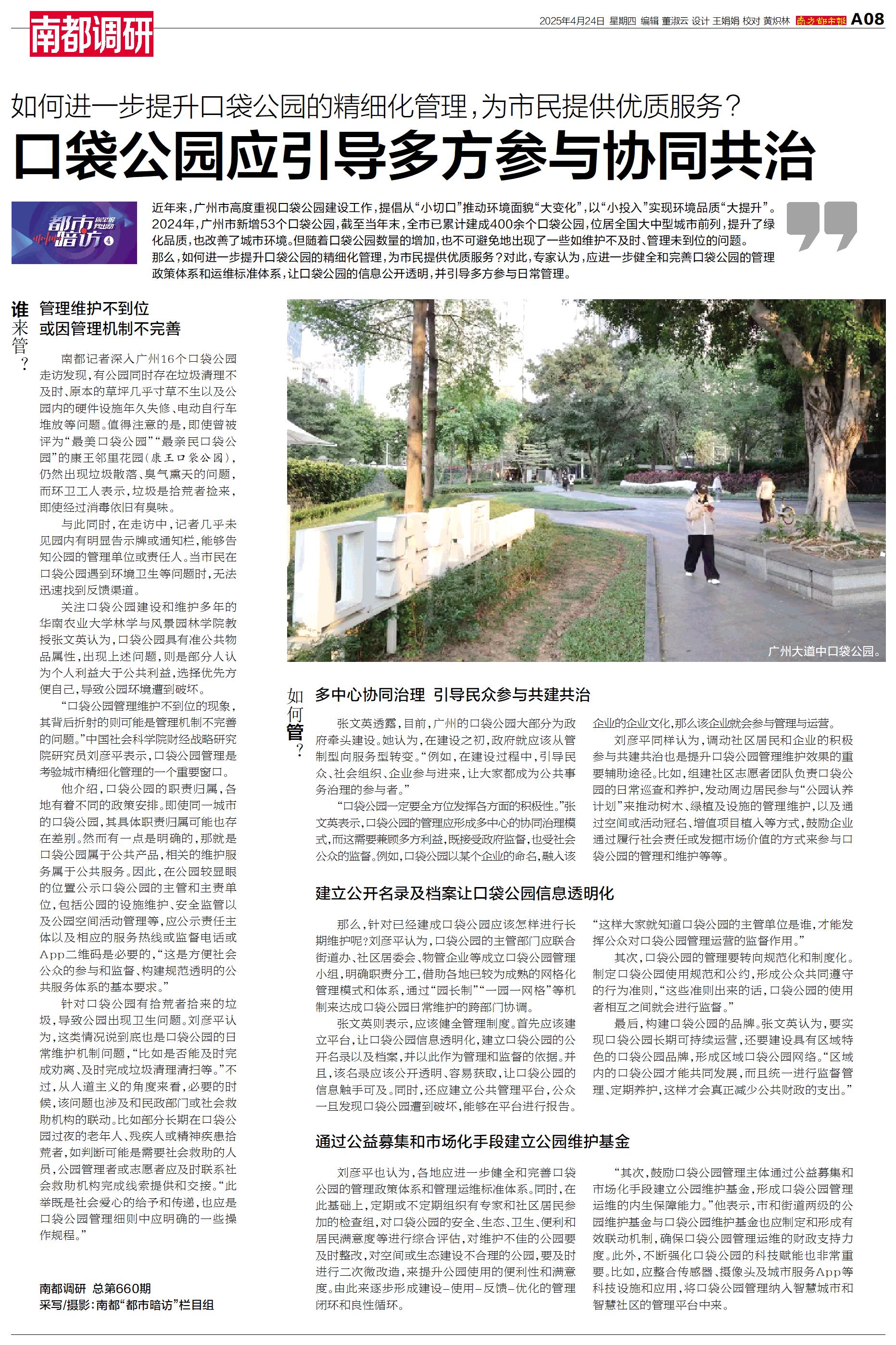 近年来,广州市高度重视口袋公园建设工作,提倡从“小切口”推动环境面貌“大变化”,以“小投入”实现环境品质“大提升”。