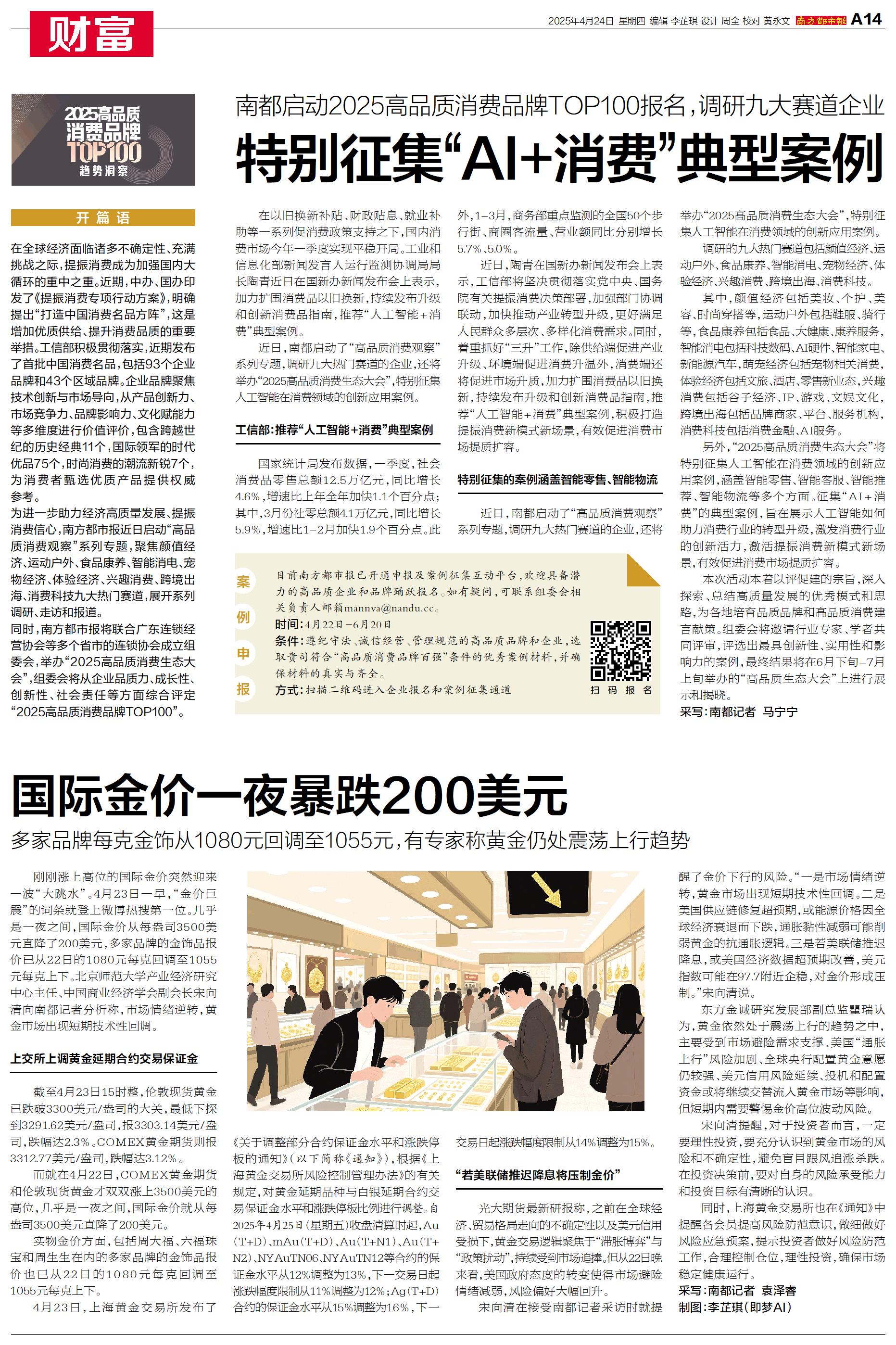 近日,南都启动了“高品质消费观察”系列专题,调研九大热门赛道的企业,还将举办“2025高品质消费生态大会”,特别征集人工智能在消费领域的创新应用案例。