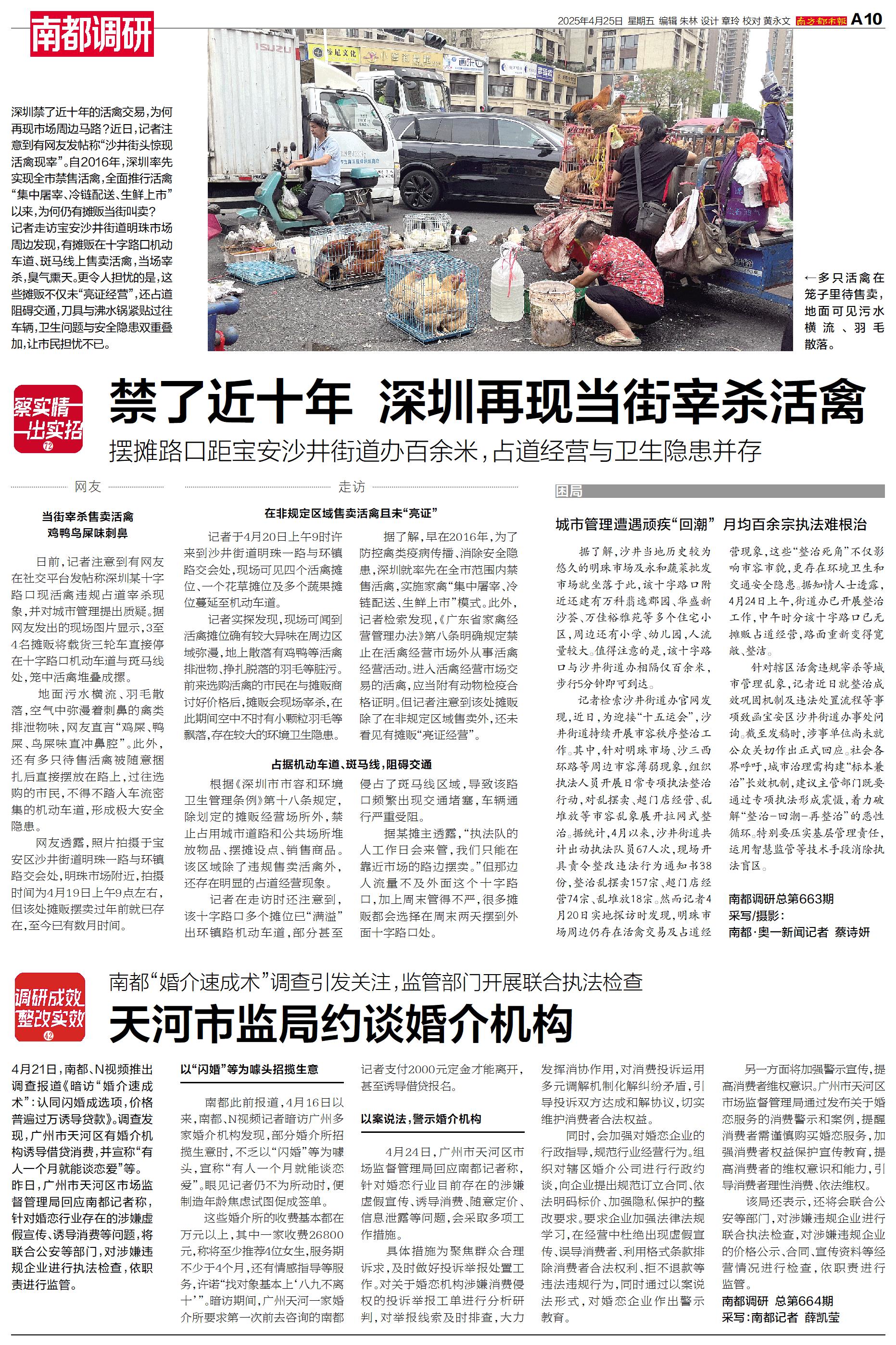 4月21日,南都、N视频推出调查报道《暗访“婚介速成术”:认同闪婚成选项,价格普遍过万诱导贷款》。调查发现,广州市天河区有婚介机构诱导借贷消费,并宣称“有人一个月就能谈恋爱”等。