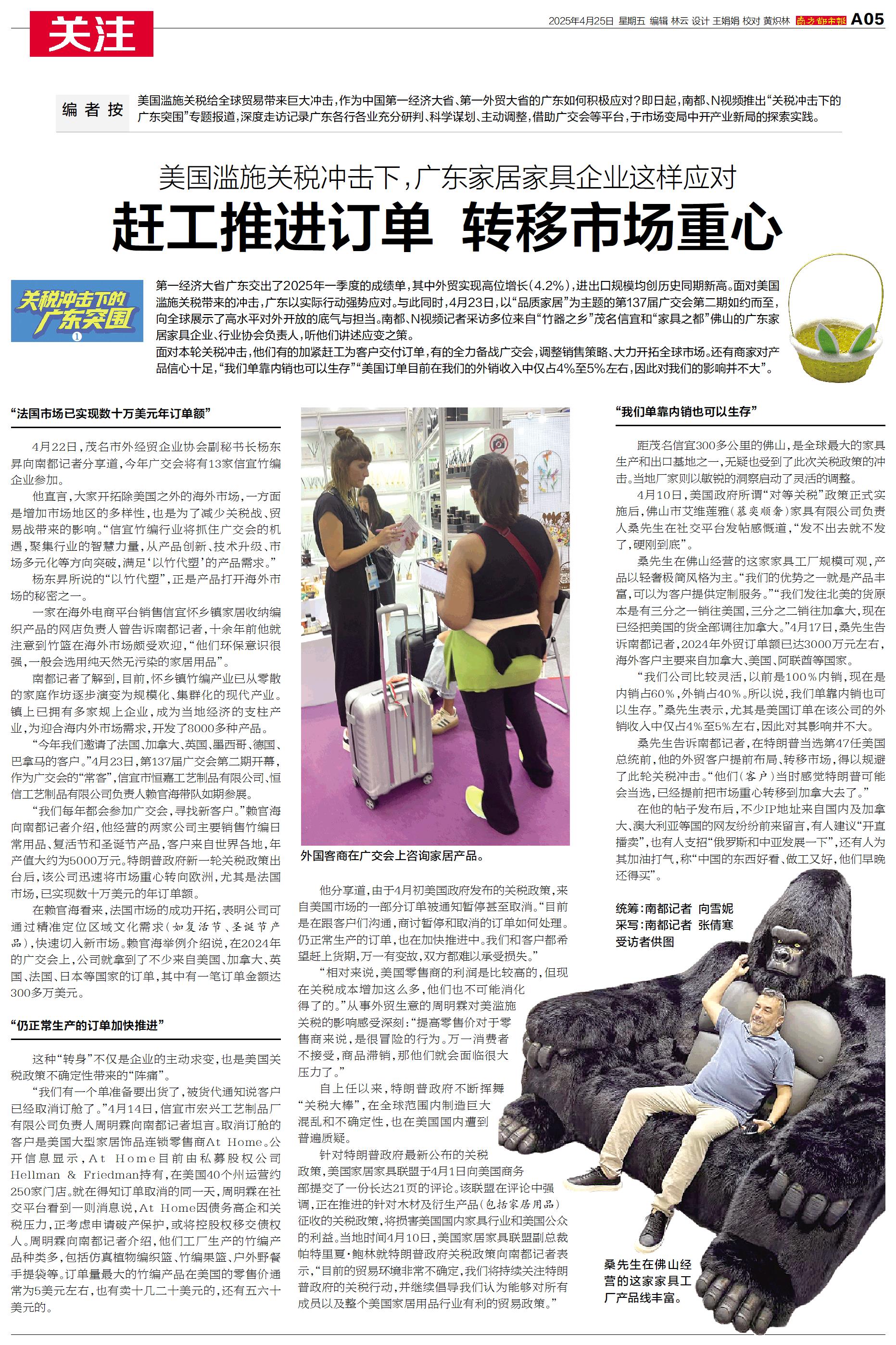 面对本轮关税冲击,他们有的加紧赶工为客户交付订单,有的全力备战广交会,调整销售策略、大力开拓全球市场。