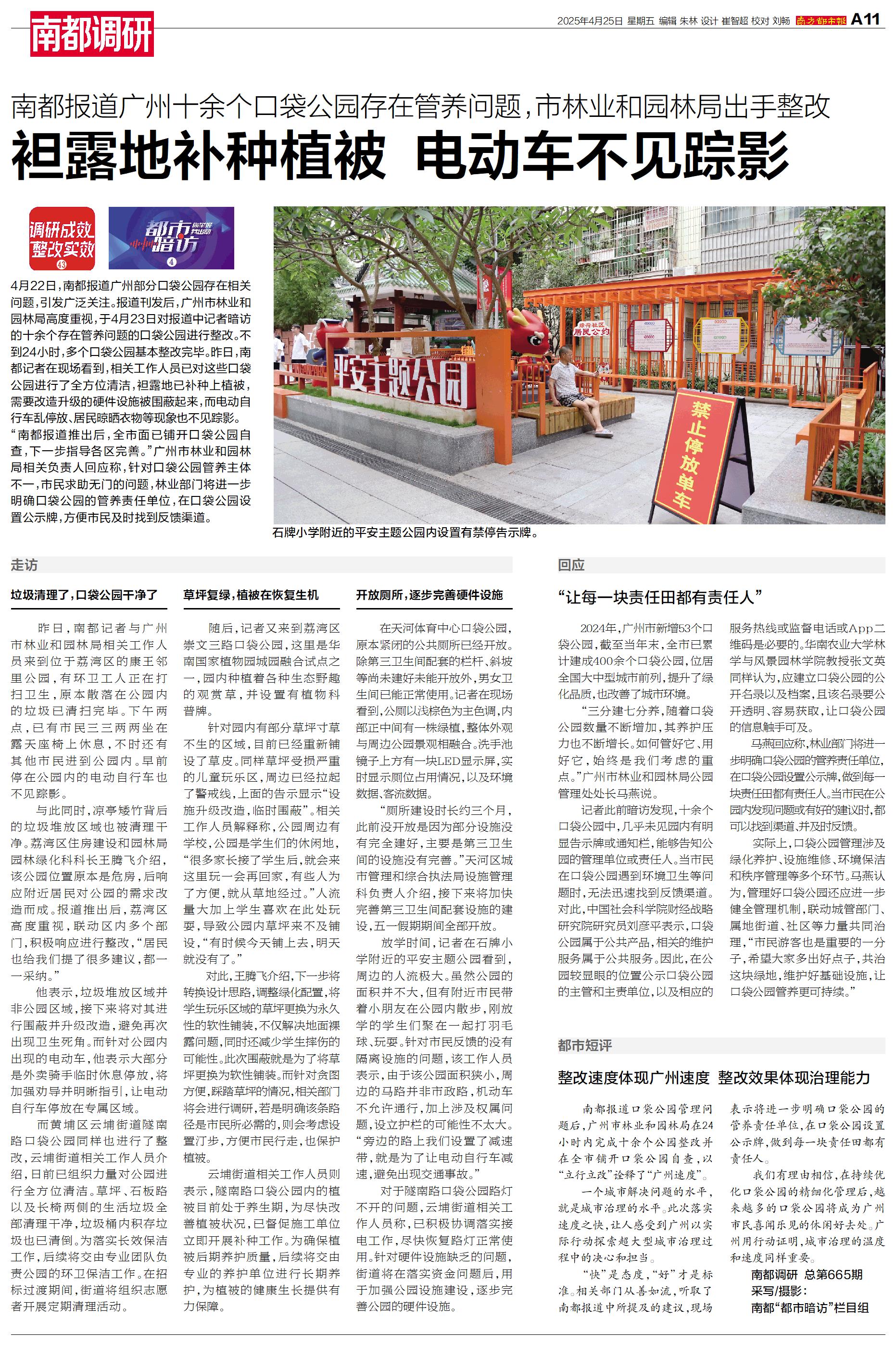 4月22日,南都报道广州部分口袋公园存在相关问题,引发广泛关注。