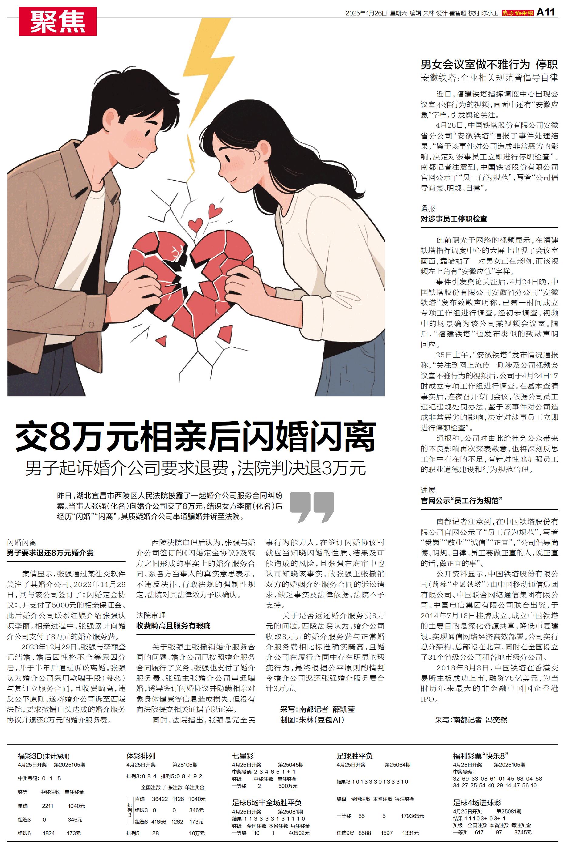 案情显示,张强通过某社交软件关注了某婚介公司。2023年11月29日,其与该公司签订了《闪婚定金协议》,并支付了5000元的相亲保证金。此后婚介公司联系红娘介绍张强认识李丽。相亲过程中,张强累计向婚介公司支付了8万元的婚介服务费。
