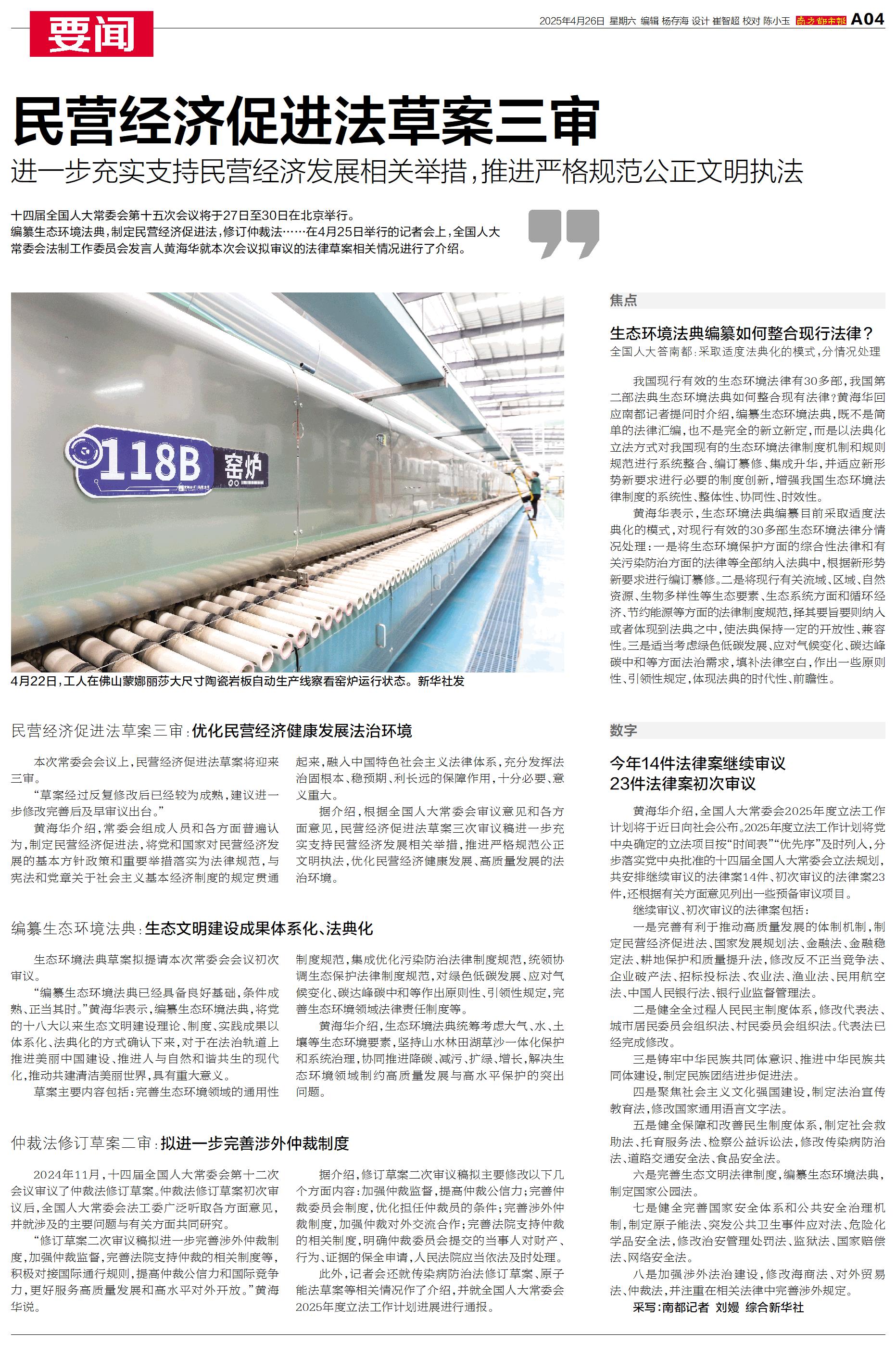 十四届全国人大常委会第十五次会议将于27日至30日在北京举行。
