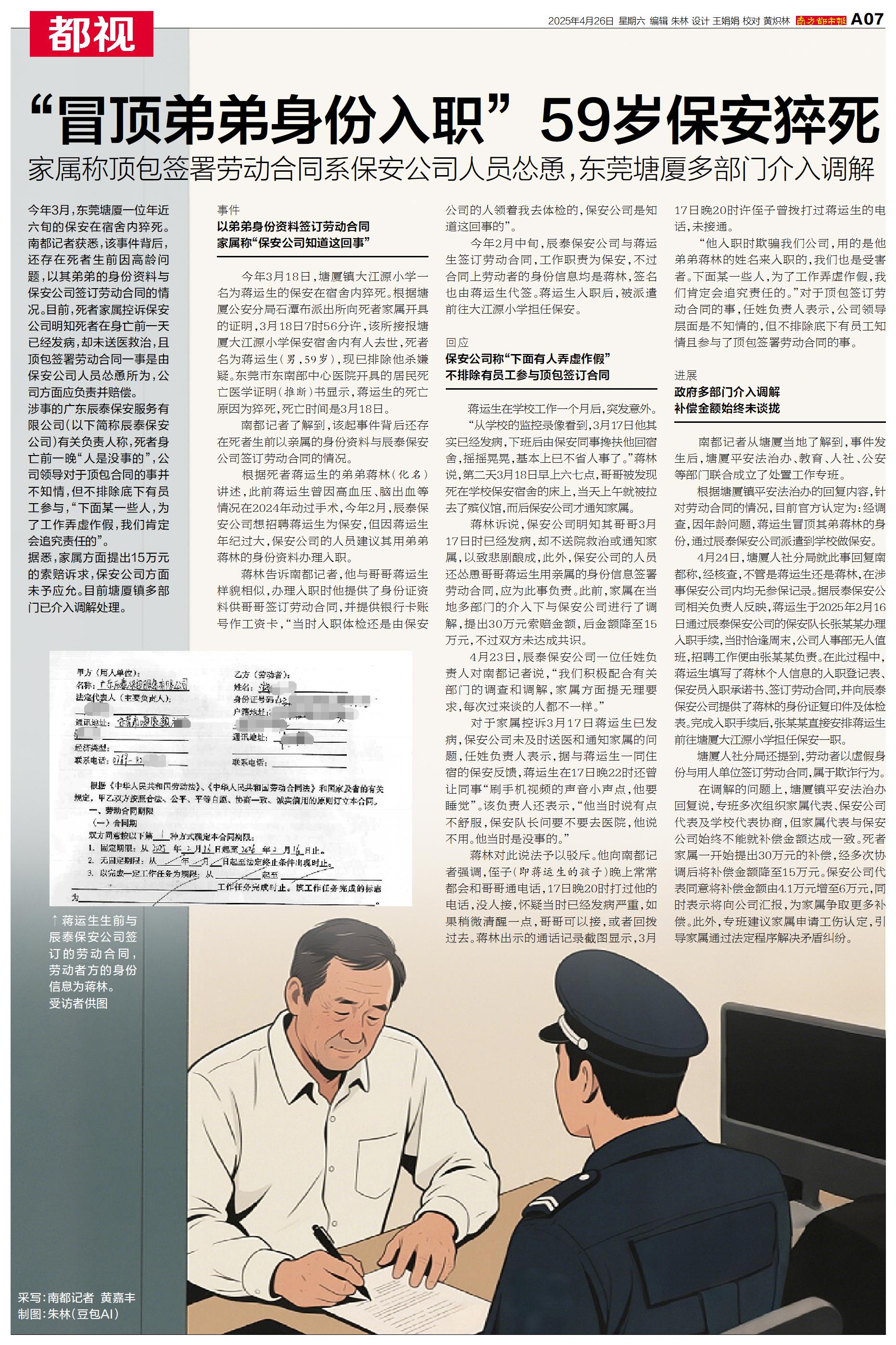 今年3月,东莞塘厦一位年近六旬的保安在宿舍内猝死。