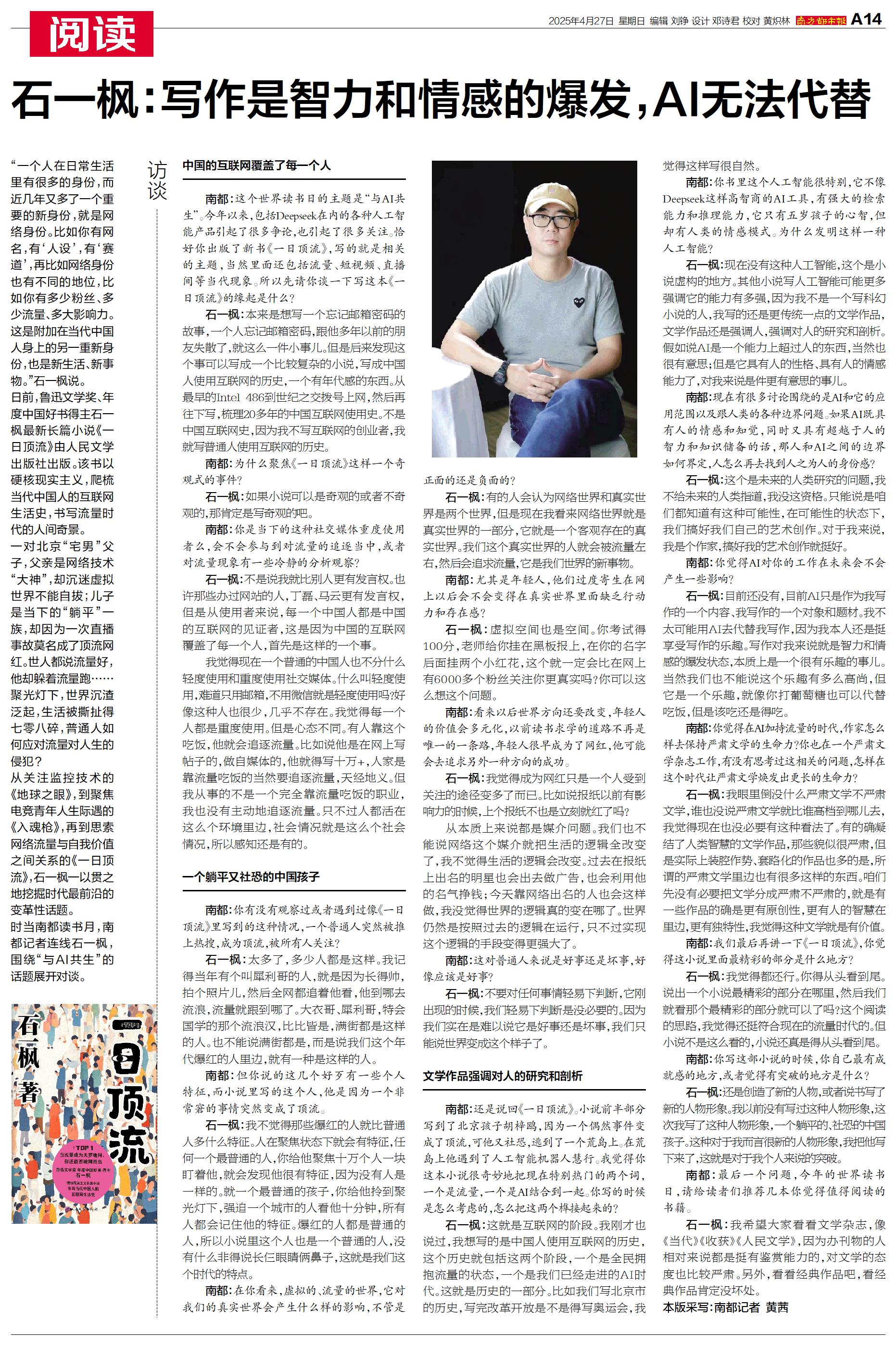 石一枫:写作是智力和情感的爆发,AI无法代替