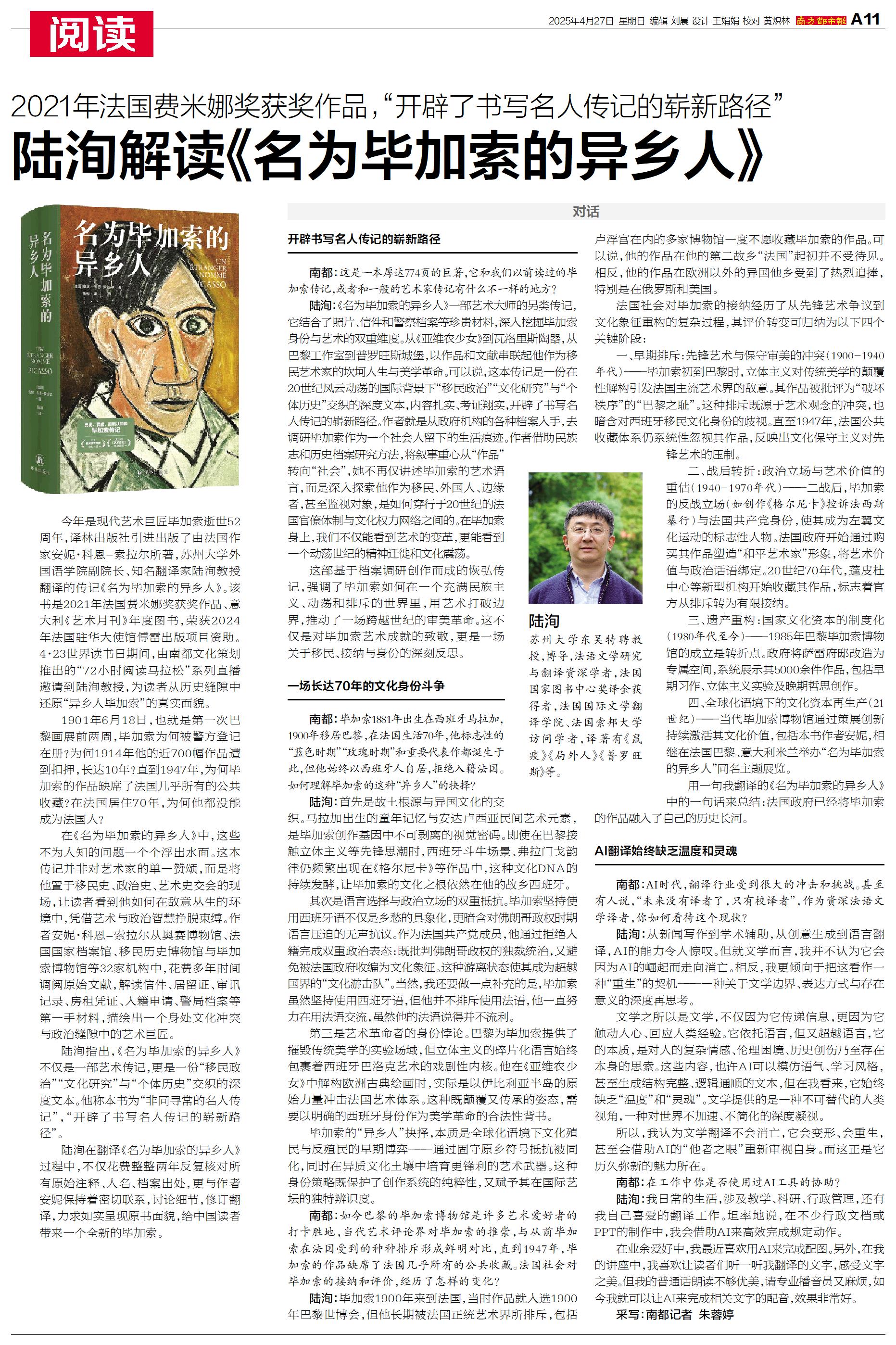 今年是现代艺术巨匠毕加索逝世52周年,译林出版社引进出版了由法国作家安妮·科恩-索拉尔所著,苏州大学外国语学院副院长、知名翻译家陆洵教授翻译的传记《名为毕加索的异乡人》。