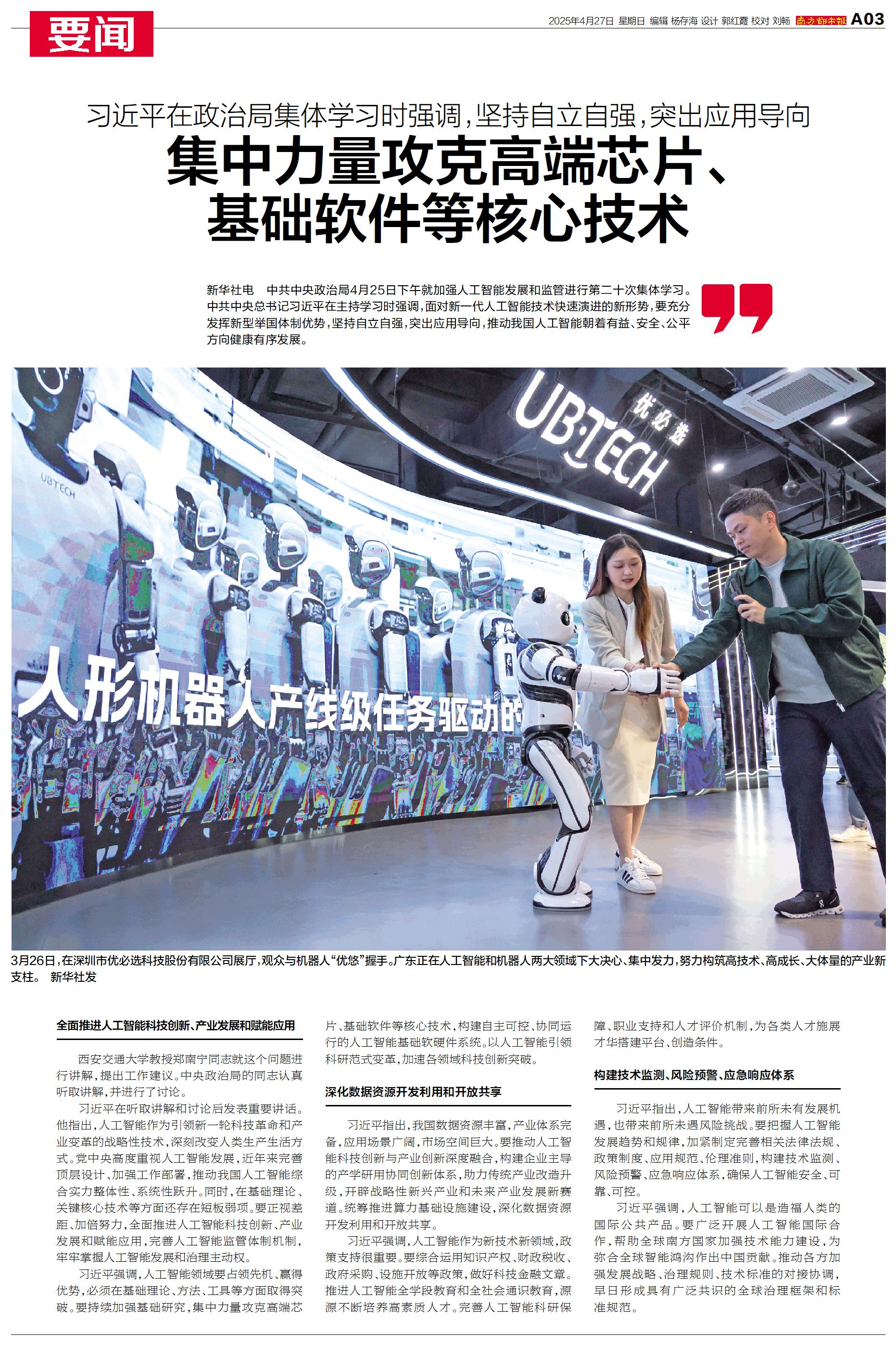 中共中央政治局4月25日下午就加强人工智能发展和监管进行第二十次集体学习。