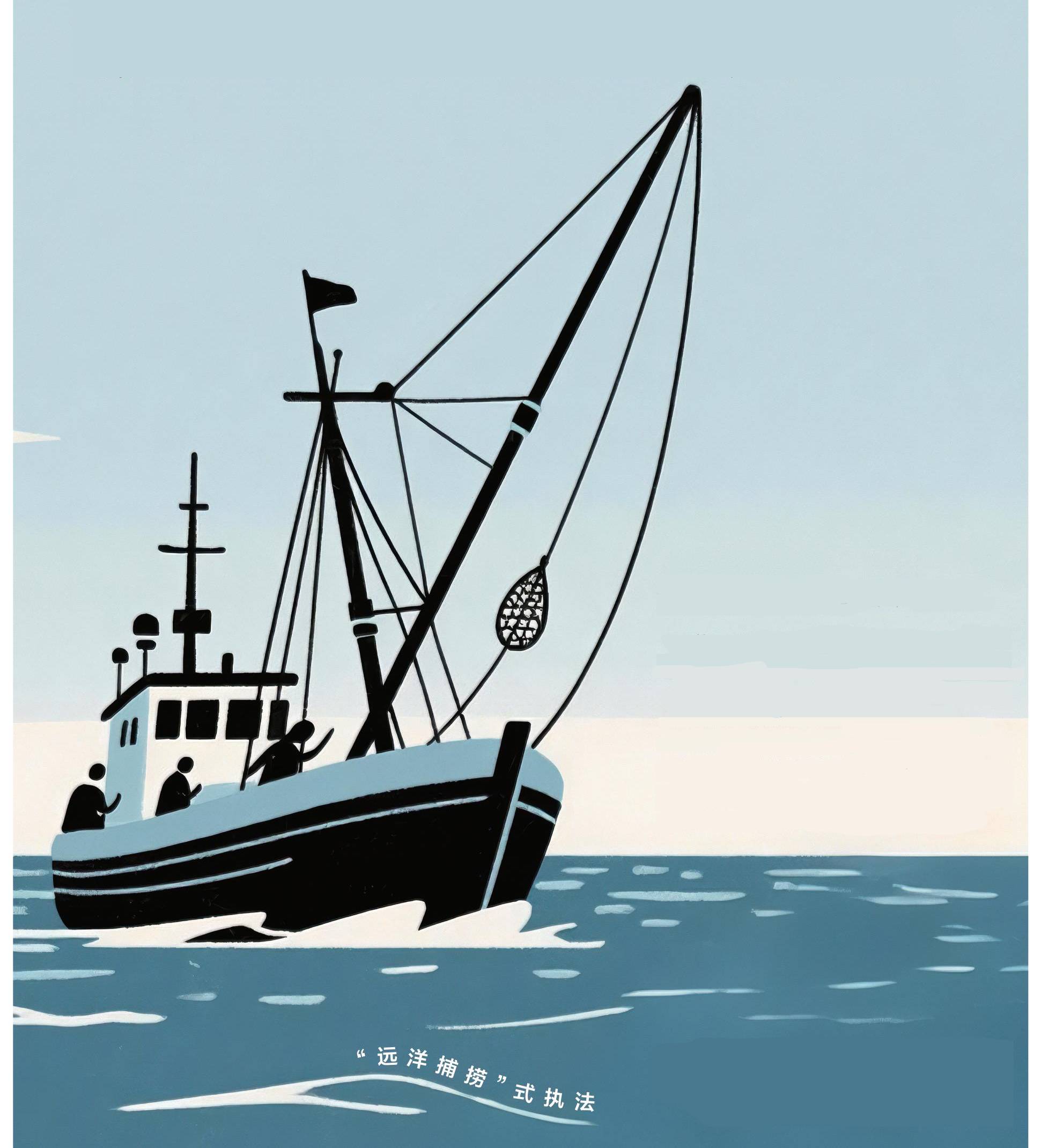 违规异地执法、趋利性执法司法行为,被外界形象地称为“远洋捕捞”式执法,引发社会关注。制图:董晓妍(即梦AI)