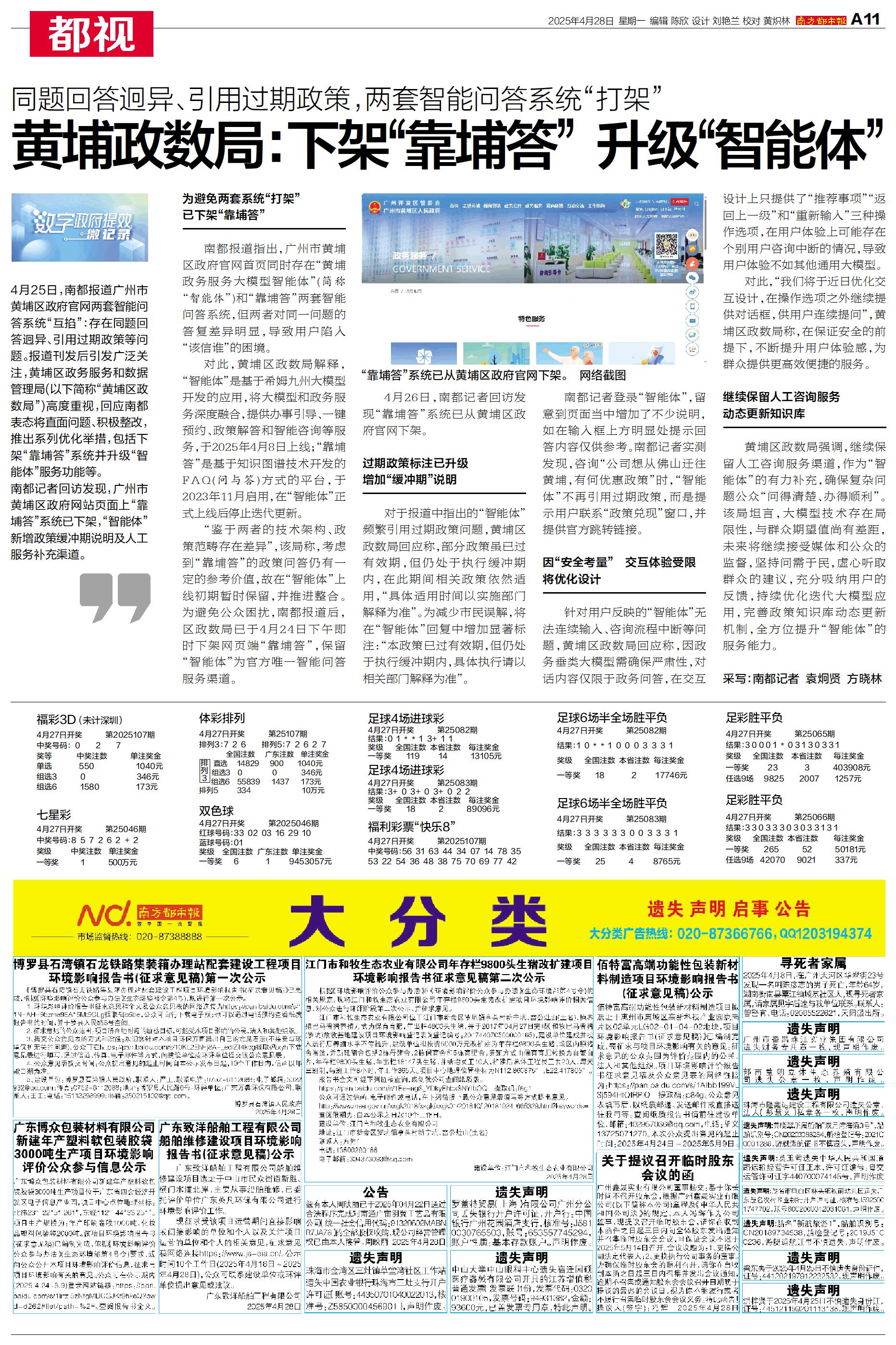 4月25日,南都报道广州市黄埔区政府官网两套智能问答系统“互掐”:存在同题回答迥异、引用过期政策等问题。报道刊发后引发广泛关注,黄埔区政务服务和数据管理局(以下简称“黄埔区政数局”)高度重视,回应南都表态将直面问题、积极整改,推出系列优化举措,包括下架“靠埔答”系统并升级“智能体”服务功能等。