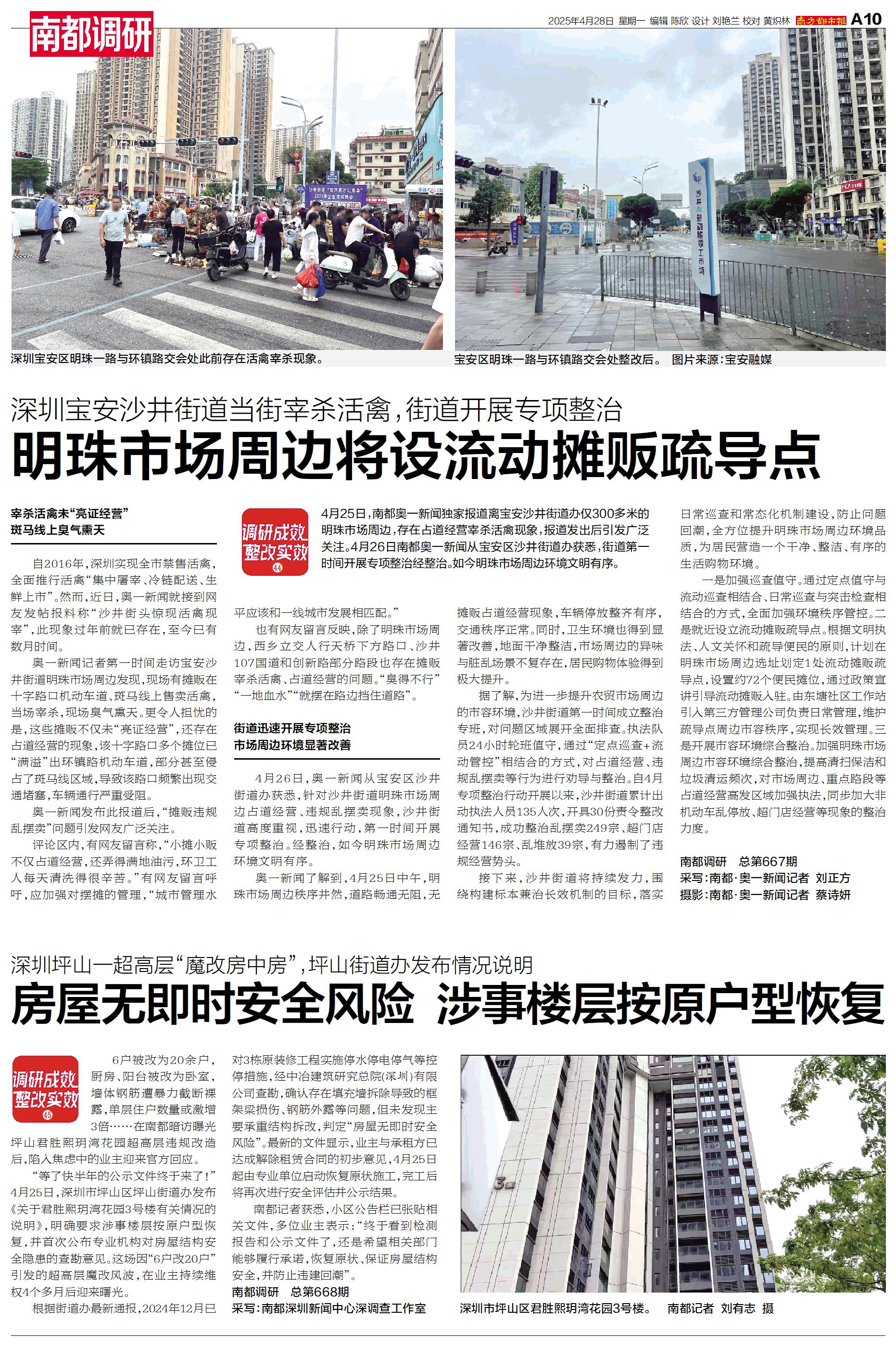 4月25日,南都奥一新闻独家报道离宝安沙井街道办仅300多米的明珠市场周边,存在占道经营宰杀活禽现象,报道发出后引发广泛关注。