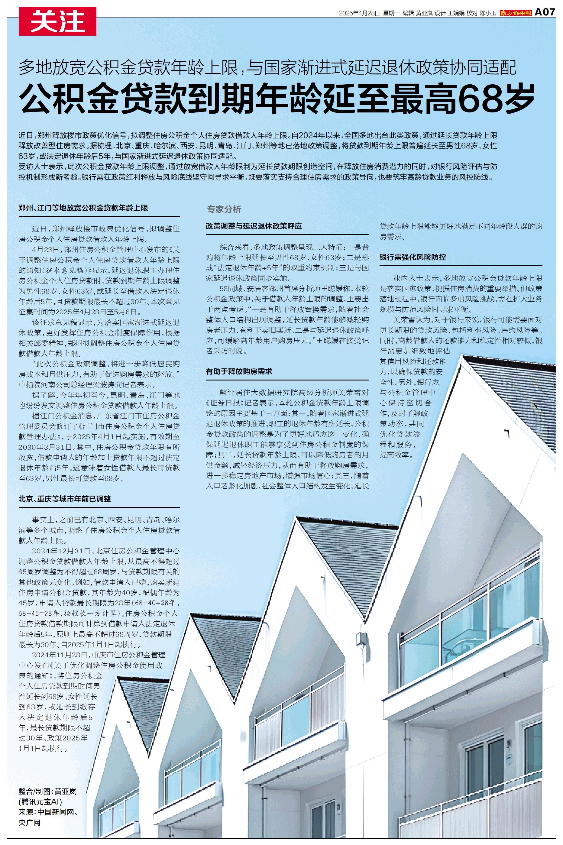 公积金贷款到期年龄延至最高68岁