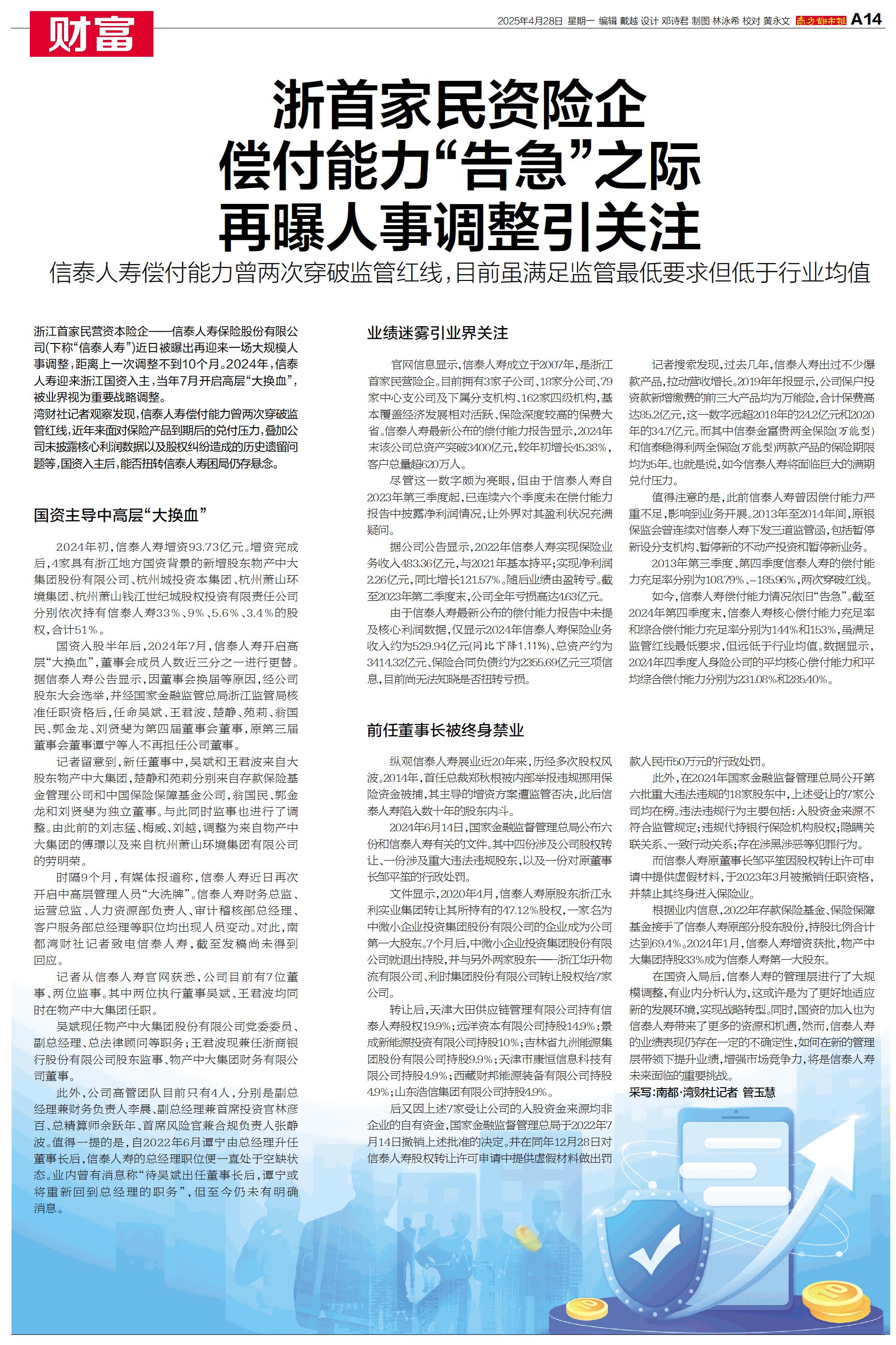 浙首家民资险企 偿付能力“告急”之际 再曝人事调整引关注