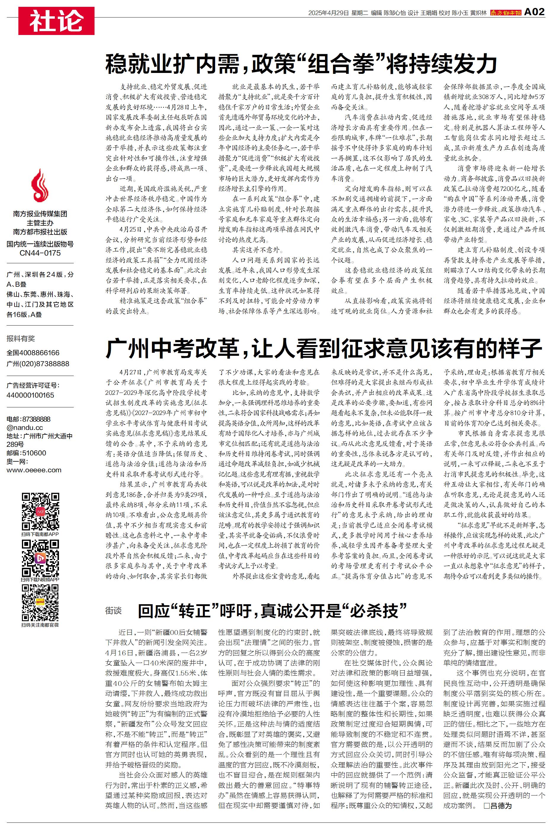 “征求意见”早就不是新鲜事,怎样操作,应该实现怎样的效果,此次广州中考改革的征求意见过程无疑是一种很好的示范。可以说这就是大家一直以来想象中“征求意见”的样子,期待今后可以看到更多类似的操作。