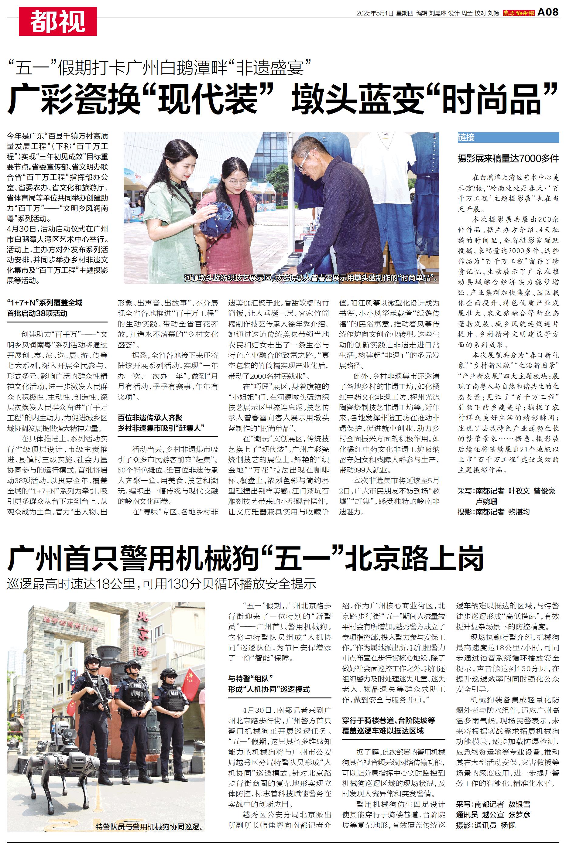 本次展览共分为“春日新气象”“乡村新风貌”“生活新图景”“产业新发展”四大主题板块:展现了南粤人与自然和谐共生的生态美景;见证了“百千万工程”引领下的乡建美学;捕捉了农村群众美好生活的精彩瞬间;述说了县域特色产业蓬勃生长的繁荣景象……据悉,摄影展后续还将陆续展出21个地级以上市“百千万工程”建设成效的主题摄影作品。