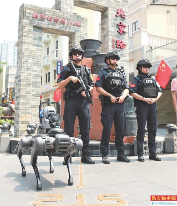 “五一”假期,广州北京路步行街迎来了一位特别的“新警员”——广州首只警用机械狗。它将与特警队员组成“人机协同”巡逻队伍,为节日安保增添了一份“智能”保障。
