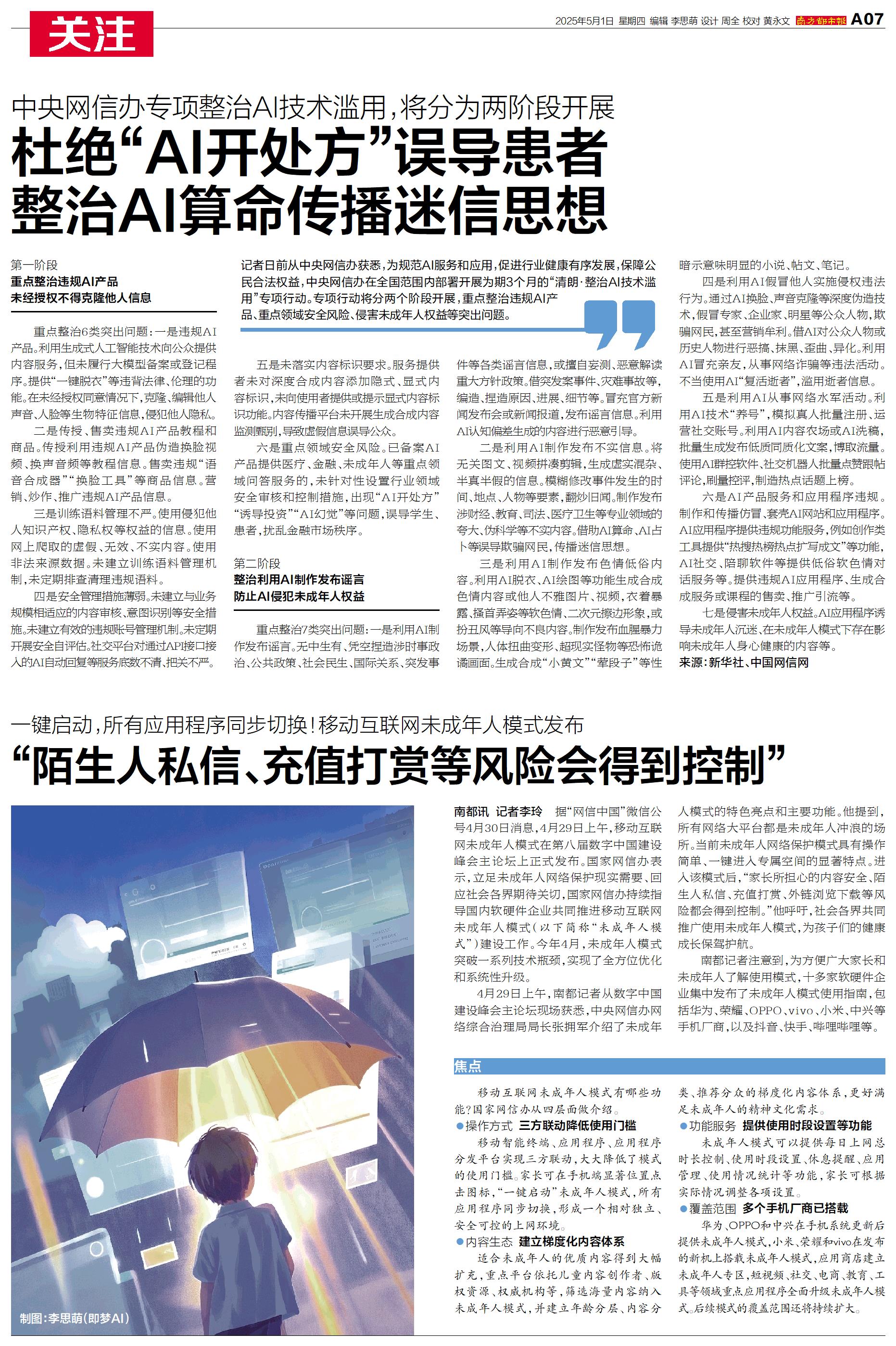 记者日前从中央网信办获悉,为规范AI服务和应用,促进行业健康有序发展,保障公民合法权益,中央网信办在全国范围内部署开展为期3个月的“清朗·整治AI技术滥用”专项行动。