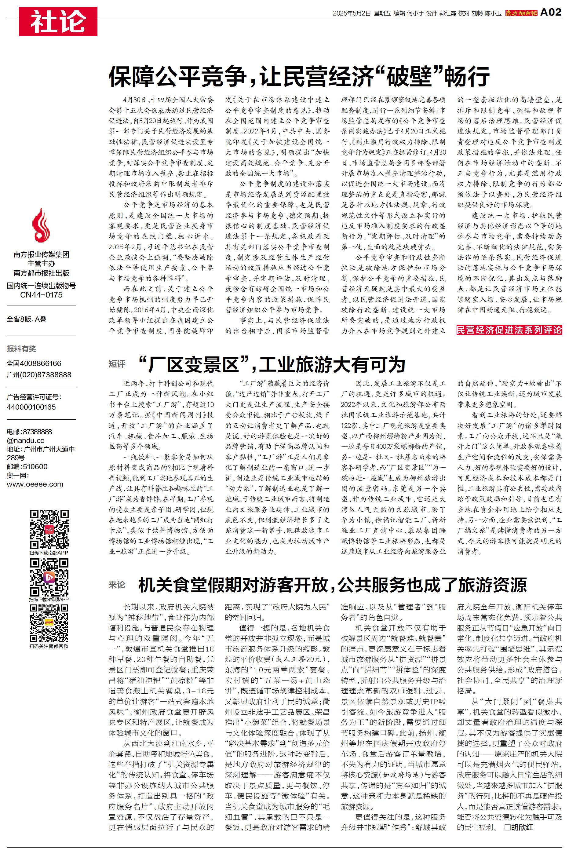 4月30日,十四届全国人大常委会第十五次会议表决通过民营经济促进法,自5月20日起施行。