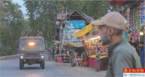 4月22日,安全人员在印控克什米尔地区帕哈尔加姆镇附近巡逻。 新华社发