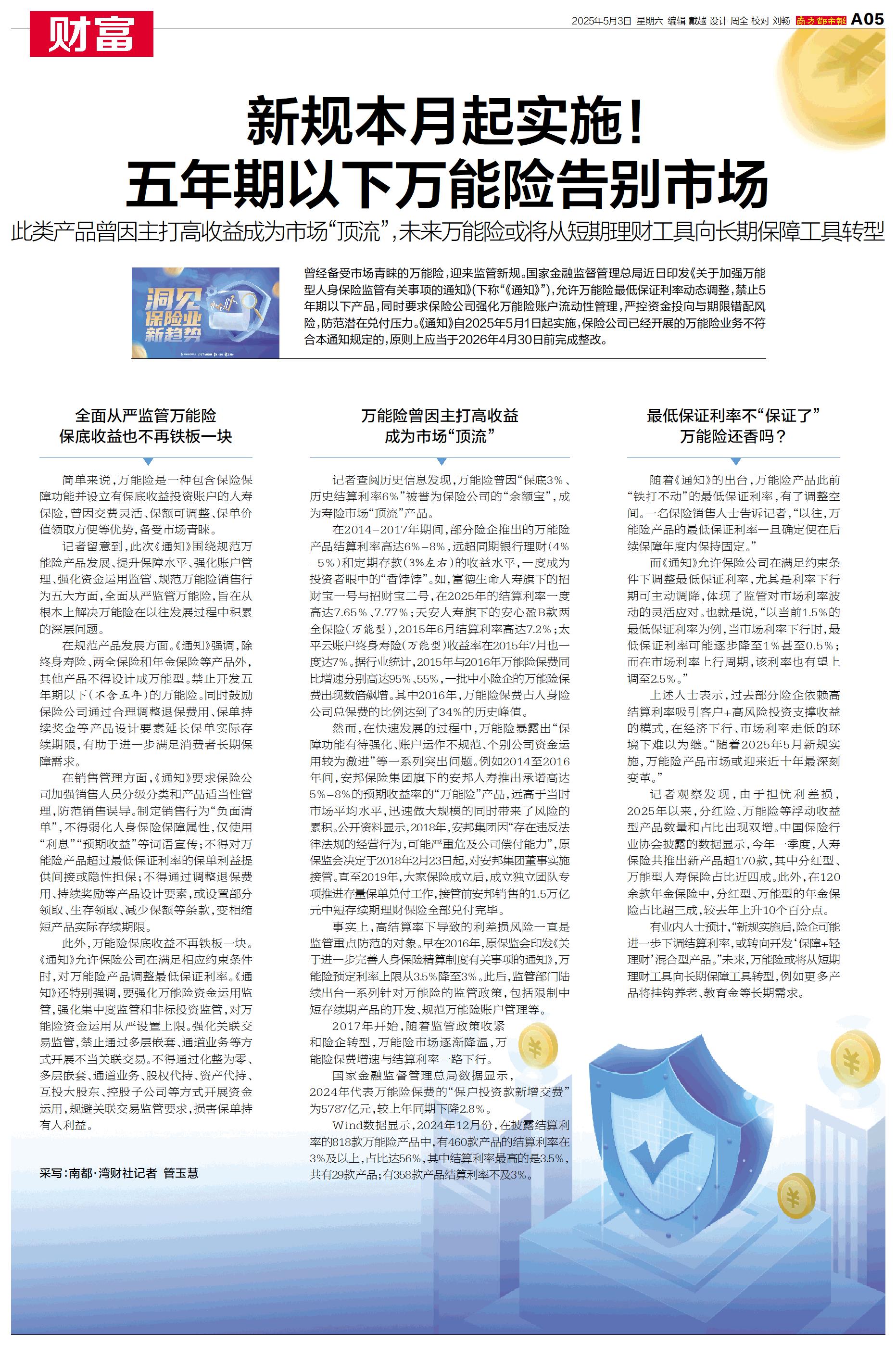 新规本月起实施!五年期以下万能险告别市场