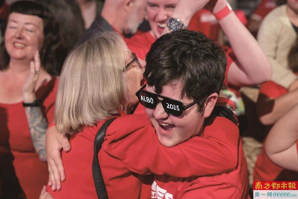 5月3日,在澳大利亚悉尼,工党支持者庆祝胜选。