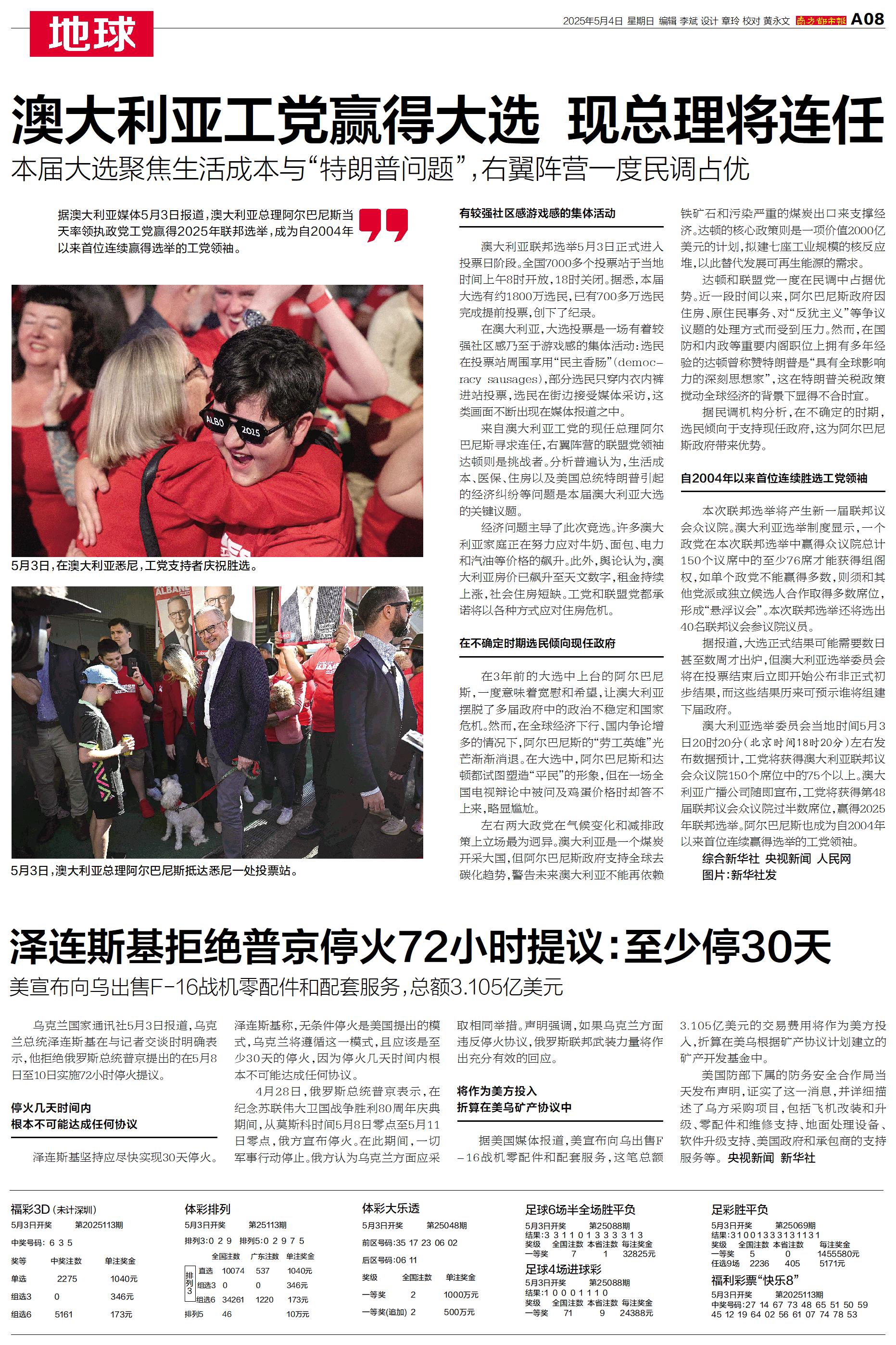 澳大利亚总理阿尔巴尼斯当天率领执政党工党赢得2025年联邦选举,成为自2004年以来首位连续赢得选举的工党领袖。